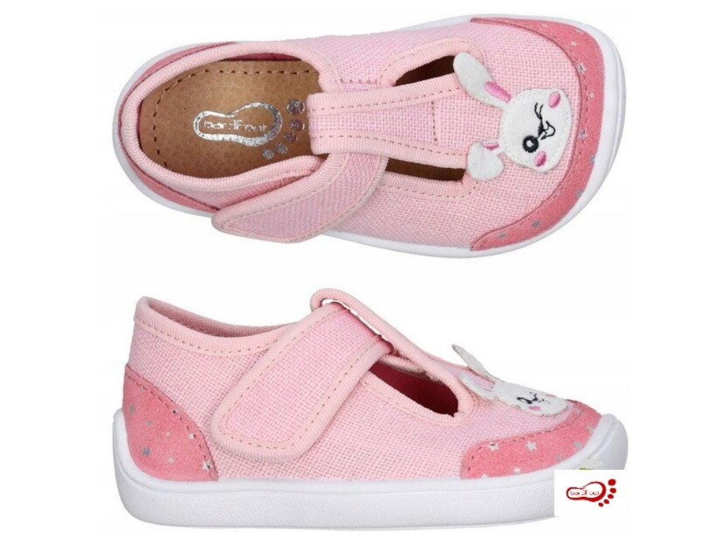 Dětské BAREFOOT papučky se zapínáním na suchý zip, který umožní pohodlné a rychlé obouvání doma i ve školce. Podrážka je vyrobena z termoplastického kaučuku o síle 3 mm, což zaručuje protiskluznost, ohebnost a velmi dobrou odolnost obuvi. Boty mají vyjímatelnou koženou stélku. Papučky krásně kopírují tvar nohy, díky výraznému prostoru v prstové části, čímž neomezují jejich pohyb při chůzi. Hezky sedí na nožce a mají lehce zpevněný opatek. Svrchní materiál je lněný, vnitřní je také textil, jsou vyrobeny ze zdravotně nezávadných materiálů, podešev je protiskluzová.