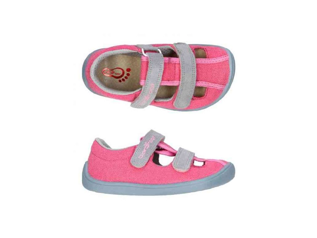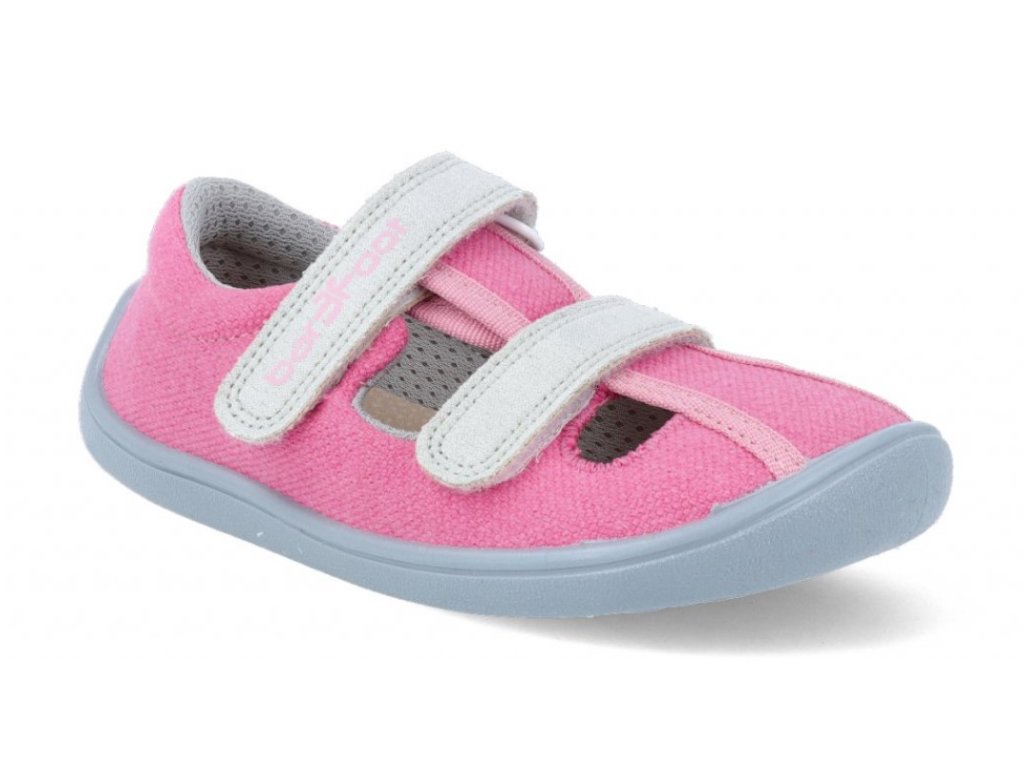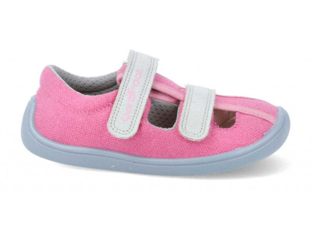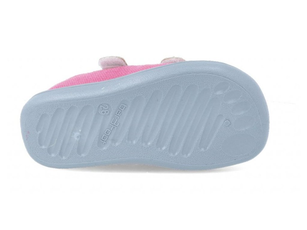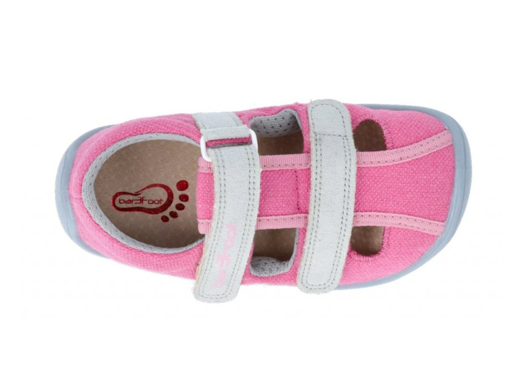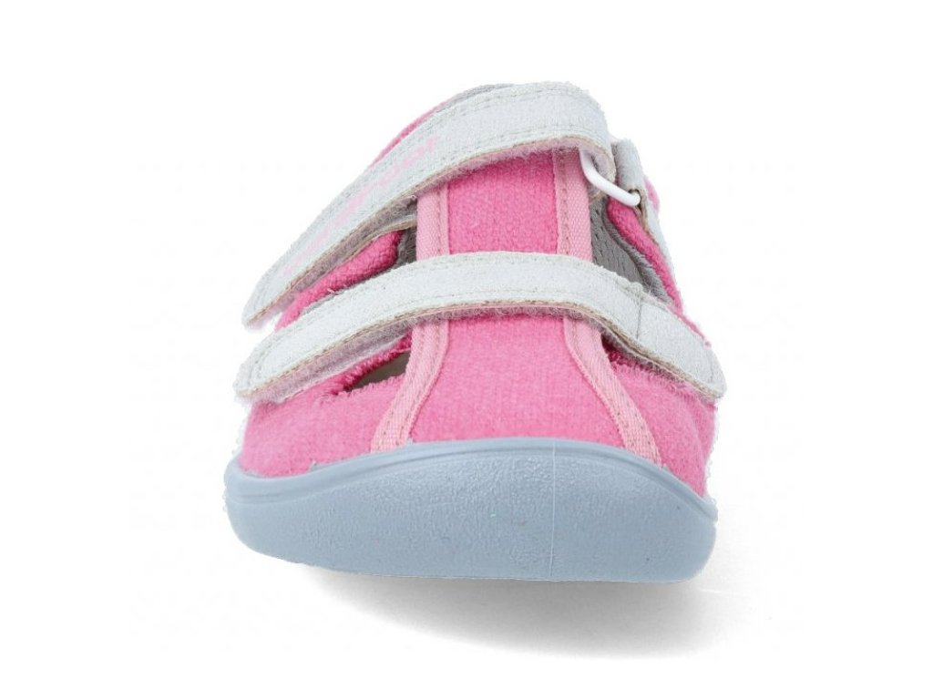 Dětské BAREFOOT sandále se zapínáním na dva suché zipy, který umožní pohodlné a rychlé obouvání, zároveň jdou velmi dobře přizpůsobit nártu. Svrchní materiál je textilní plátno a příjemná vnitřní podšívka je také textilní, jsou vyrobeny ze zdravotně nezávadných materiálů, podešev je protiskluzová. Podrážka je vyrobena z termoplastického kaučuku o síle 3 mm, což zaručuje protiskluznost, ohebnost a velmi dobrou odolnost obuvi, sandálky mají nulový drop. Opatek je mírně zpevněn, jeho funkci částečně nahrazuje zvýšená podrážka za patou. Boty mají vyjímatelnou koženou stélku bez podpory klenby a bez tvarování, je ohebná, pěnová s koženým nášlapem a antibakteriální. Papučky krásně kopírují tvar nohy, díky výraznému prostoru v prstové části, čímž neomezují jejich pohyb při chůzi.