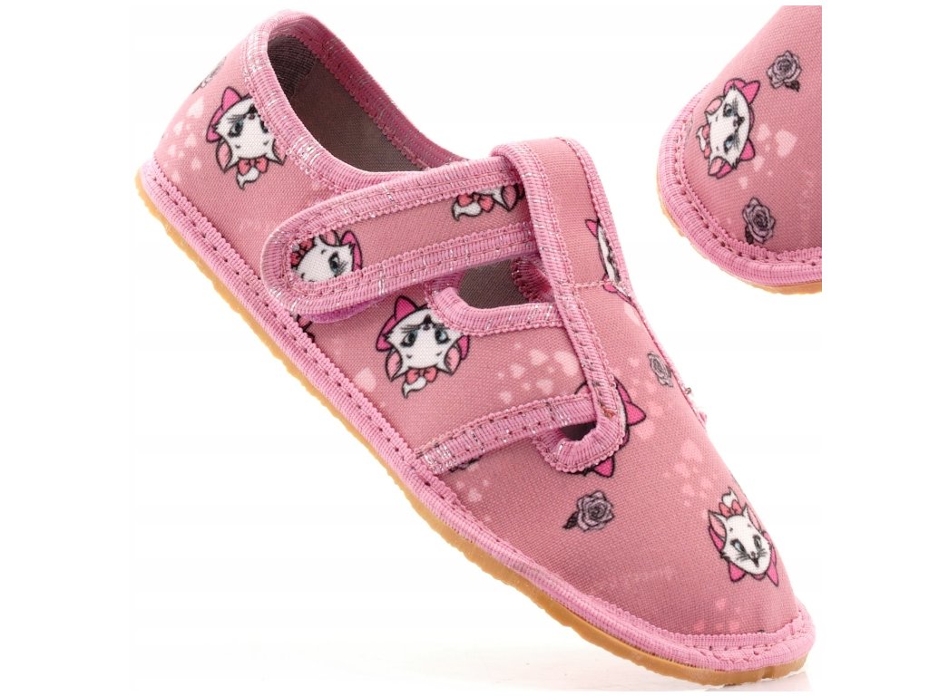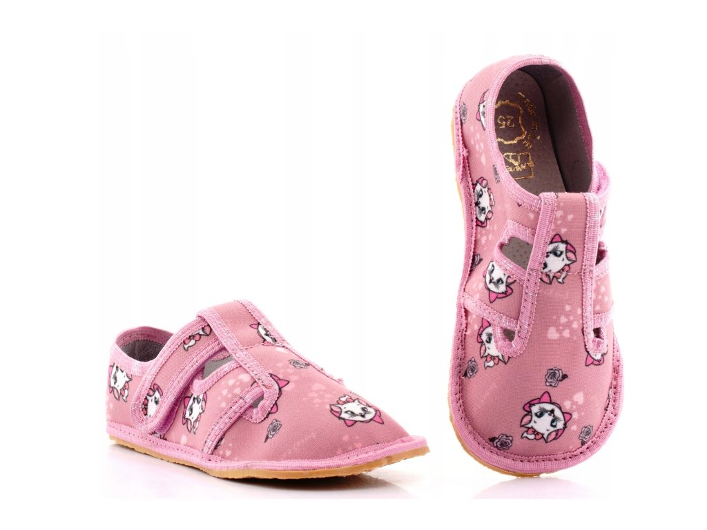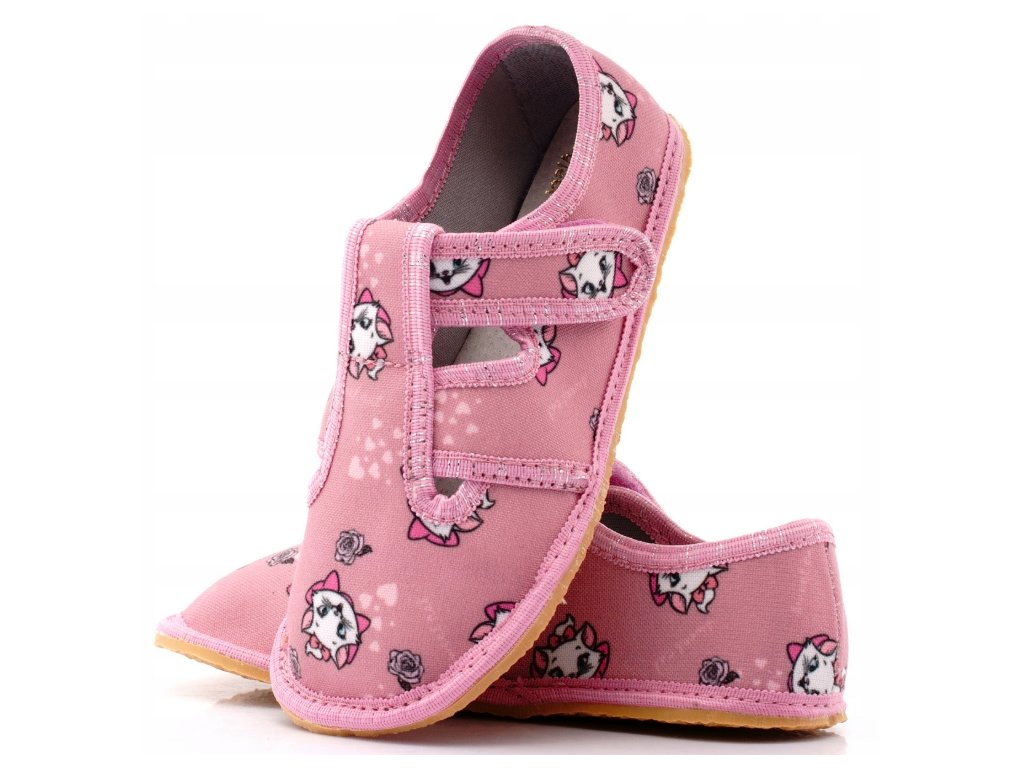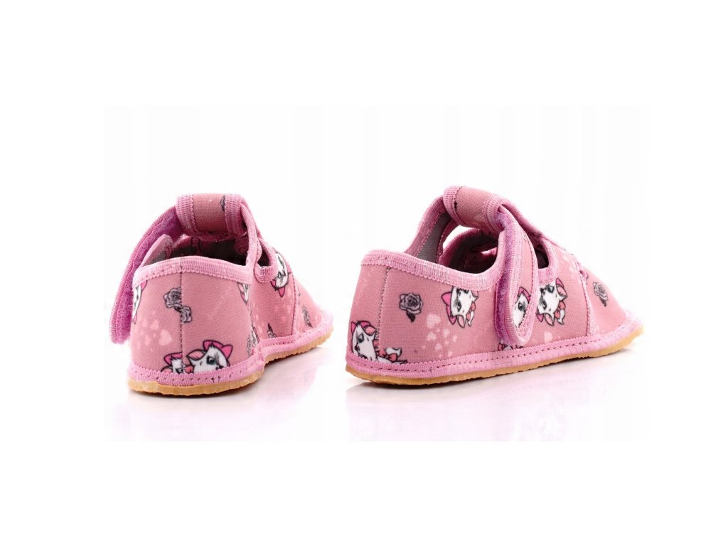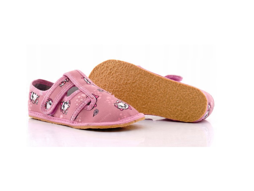 Dívčí BAREFOOT papučky značky RAWEKS - růžové s kočičkami.
