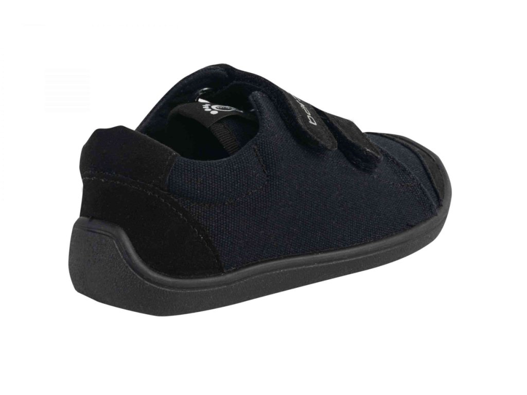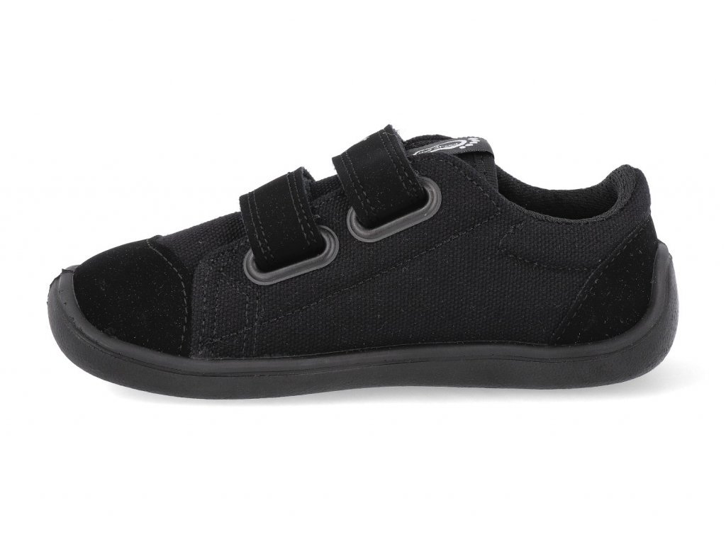 Dětské BAREFOOT tenisky 3F se zapínáním na dva suché zipy, který umožní pohodlné a rychlé obouvání, zároveň jdou velmi dobře přizpůsobit nártu. Svrchní materiál je v kombinaci bavlněné tkaniny a imitace semiše a příjemná vnitřní podšívka je také textilní, jsou vyrobeny ze zdravotně nezávadných materiálů, podešev je protiskluzová. Podrážka je vyrobena z termoplastického kaučuku o síle 3 mm, což zaručuje protiskluznost, ohebnost a velmi dobrou odolnost obuvi, tenisky mají nulový drop. Opatek je mírně zpevnění, jeho funkci částečně nahrazuje zvýšená podrážka za patou. Boty mají vyjímatelnou koženou stélku bez podpory klenby a bez tvarování, je ohebná, pěnová s koženým nášlapem, kožená vložka obsahuje prvky aktivního uhlí, které pohlcují zápach a je antibakteriální. Tenisky krásně kopírují tvar nohy, díky výraznému prostoru v prstové části, čímž neomezují jejich pohyb při chůzi. Hezky sedí na nožce a mají lehce zpevněný opatek.