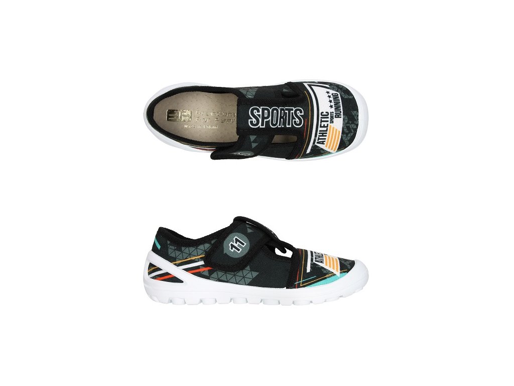Krásné papučky/tenisky/sandálky se zapínáním na suchý zip, který umožní pohodlné a rychlé obouvání doma i ve školce. Podrážka je dostatečně flexibilní a má dýchací otvory. Boty mají vyjímatelnou antibakteriální koženou stélku, která je zároveň prodyšná a anatomicky tvarovaná. Papučky mají rozšířenou prstovou část, hezky sedí na nožce a mají pevný opatek. Svrchní materiál je textil a vnitřní je textil/syntetika, podešev je PU. Boty můžeme používat v interiéru, v omezených případech i v exteriéru jako vycházkovou obuv do suchého počasí.