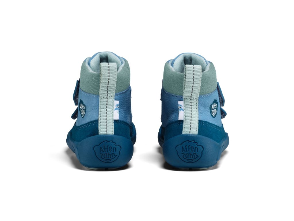 Dětské barefoot boty německé značky Affenzahn jsou měkké a lehké kožené kotníčkové botičky. Díky tenké, ohebné a neklouzavé podrážce umožňují přirozenou dynamiku chůze a postupné odvalování chodidla. To spolu s dostatečnou šířkou a místem pro prsty umožňuje přirozený a zdravý vývoj dětských nohou. Nově vyvinutá podrážka poskytuje přilnavost a stylový design skvěle vypadá. Jsou voděodolné, reflexní a protiskluzové. Nepromokavá a prodyšná membrána AffenTex zajistí, že budou dětské nohy stále v suchu a v teple bez ohledu na počasí. Svrchní materiál je z kombinace hladké a semišové kůže, fleecová podšívka je odolná proti chladu, podešev je protiskluzová a tvoří ji 30% přírodní pryž a 70% syntetická pryž. Boty se zapínají na dva suché zipy, takže děti nebudou mít s obouvání žádný problém. Na zadní straně se nachází puzzle obrázek, pro rozlišení pravé a levé boty a jsou vybaveny reflexními prvky.