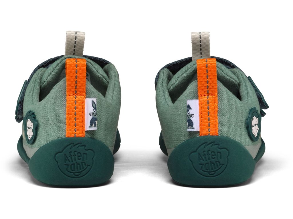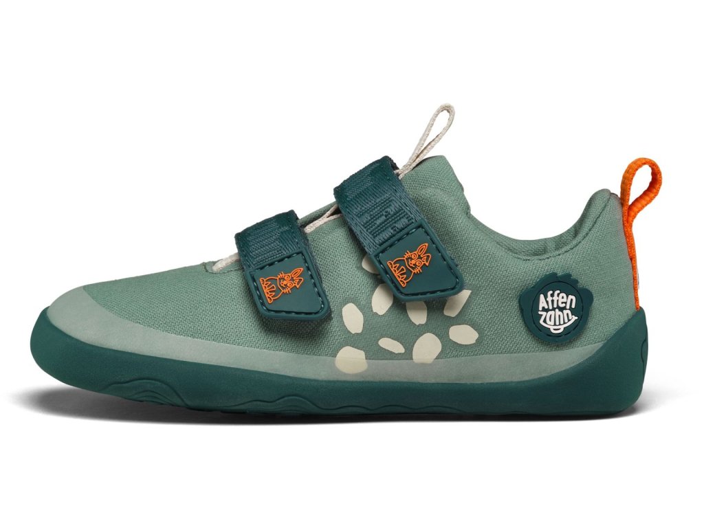 Dětské barefoot boty německé značky Affenzahn mají ergonomický tvar a jsou z organické bavlny - veganské. Díky tenké, ohebné a neklouzavé podrážce umožňují přirozenou dynamiku chůze a postupné odvalování chodidla. To spolu s dostatečnou šířkou a místem pro prsty umožňuje přirozený a zdravý vývoj dětských nohou. Svrchní materiál i podšívka jsou ze 100% certifikované organické bavlny, podešev je protiskluzová a tvoří ji 30% přírodní pryž a 70% syntetická pryž. Boty se zapínají na dva suché zipy, takže děti nebudou mít s obouvání žádný problém. Vhodné jsou pro jarní a letní dny. Bezpečnost dítěte zajistí reflexní prvky, které jsou umístěny na patě a na jazyku.