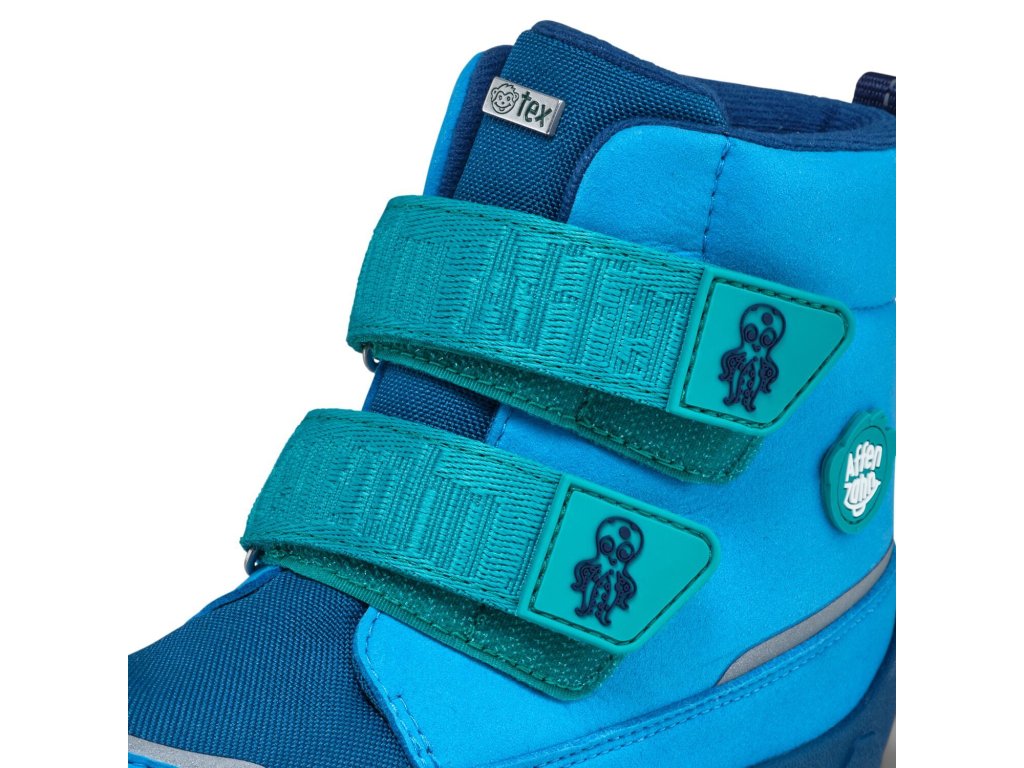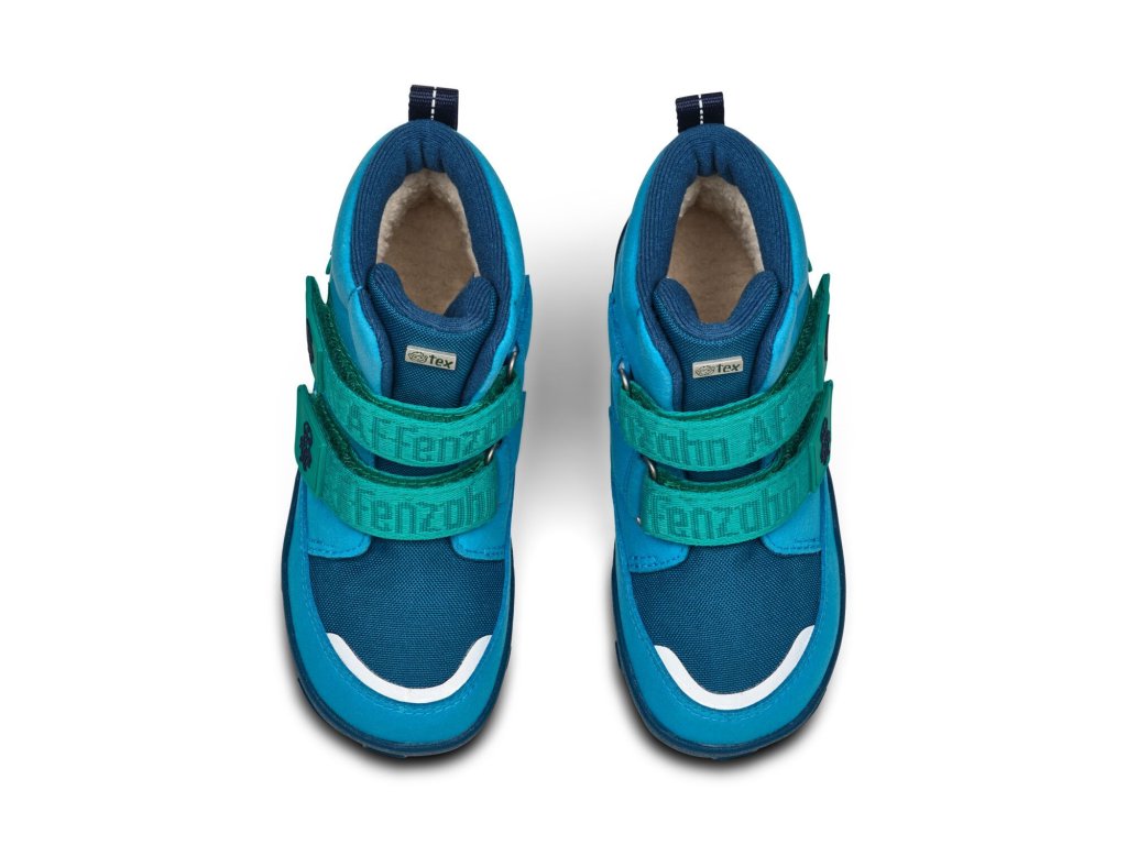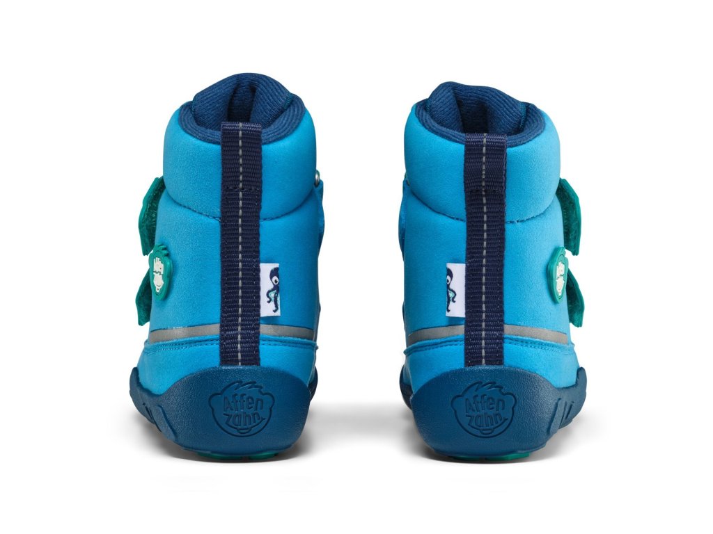 Barefoot zimní boty AFFENZAHN Mid Boot Vegan Comfy s nepromokavou membránou AffenTex v modré barvě.