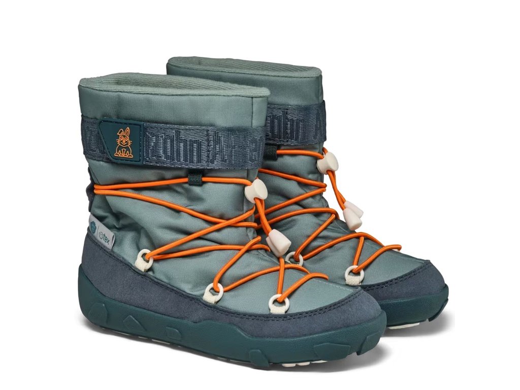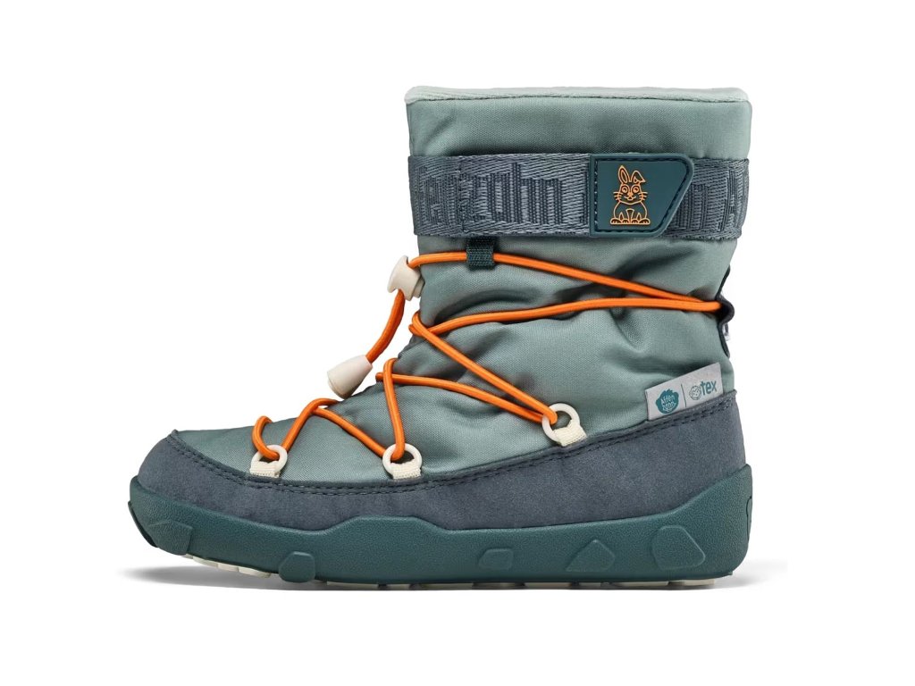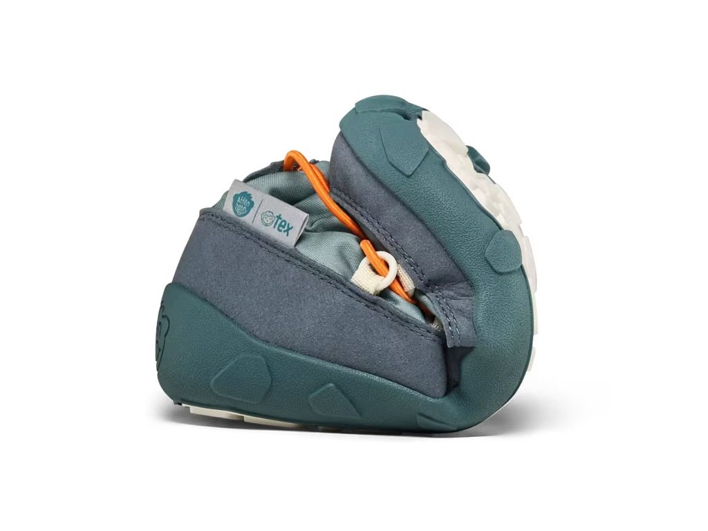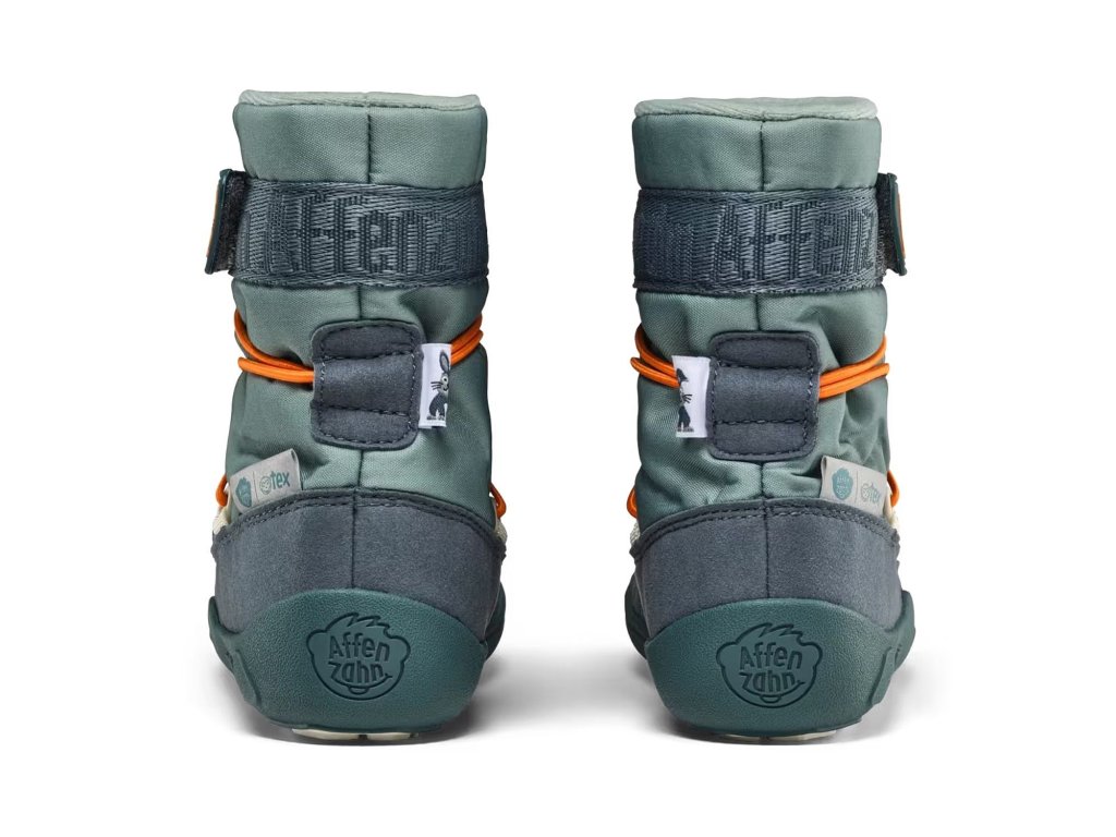 Dětské barefoot zimní boty/sněhule německé značky Affenzahn jsou ideálním společníkem na zimu - mají ergonomický tvar a jsou určené přímo do sněhu. Díky speciální membráně AffenTex se do bot nedostane žádná vlhkost zvenčí a nohy zůstanou v suchu a v teple i po skákání v loužích. Nově vyvinutá podrážka poskytuje přilnavost a stylový design vypadá skvěle. Jsou super lehké a podrážka bot je jen tak silná, jak je potřeba. Není polstrovaná, aby děti mohly cítit a vnímat své okolí a povrch. Jsou tak lehké, až by se mohlo zdát, že na sobě nemáte vůbec žádné boty. Boty jsou vybaveny reflexními prvky, které odrážejí světlo ve tmě. Podešev poskytuje extra podporu dětským nohám a má veliký vzorek, který zaručí, že jen tak někde dítě neuklouzne. Přirozený tvar bot nabízí dostatek prostoru pro každý prst, takže nohy nejsou stísněné a mohou se zdravě vyvíjet. Na zadní straně se nachází puzzle obrázek, pro rozlišení pravé a levé boty. Boty jsou veganské - svrchní materiál je 100% recyklovaný Econyl nylon. Podšívka je 100% recyklovaný polyester, podešev je protiskluzová a tvoří ji 30% přírodní pryž a 70% syntetická pryž, stélku mají z rostlinného materiálu (pěna BLOOM) a syntetické pěny. Boty mají tkaničky, které se snadno a rychle utahují pomocí posuvného jezdce. Rovněž se snadno se nazouvají i zouvají. Bezpečnost dítěte zajistí reflexní prvky, které jsou umístěny na patě.