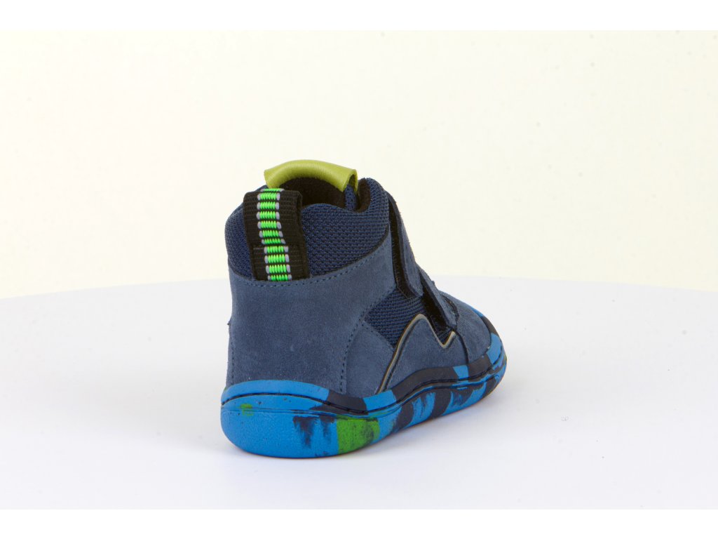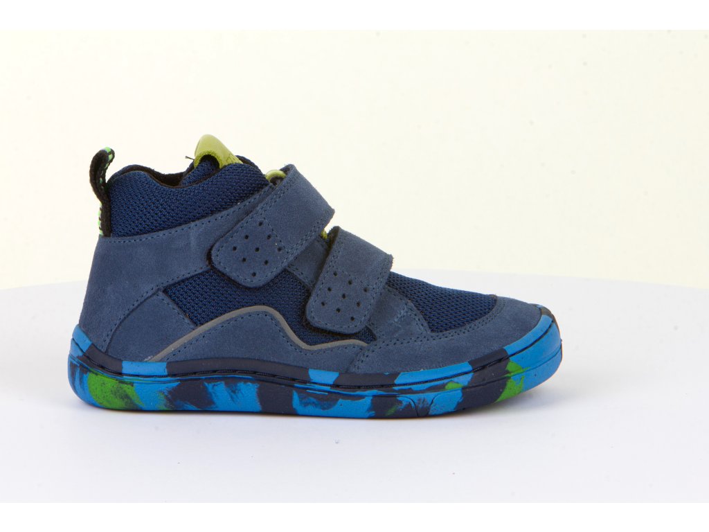 Barefoot celoroční kotníkové boty od chorvatské značky Froddo. Botičky jsou extrémně měkké, lehké a ohebné všemi směry, i když se zpočátku zdá podrážka tužší, nošením velmi rychle změkne. Sedí na normální až mírně širší nohu, ale lze je velmi dobře utáhnout okolo kotníku a díky zapínání na dva suché zipy je lze dobře regulovat na nárt. Boty jsou vyrobeny z vysoce kvalitní voděodolné kůže velur a textilu, která odpuzuje vodu a neobsahuje nebezpečné látky a sloučeniny, kůže je velmi příjemná a odolná, podšívka je textilní. Širší tvar špičky poskytne dostatek prostoru dětským prstíkům, praktické přetažení gumy přes špičku (ochrana před promáčením a odíráním). Nohy mohou vnímat povrch po kterém chodí díky rovné a tenké podrážce. Boty mají nulový drop, extra flexibilní podrážka z přírodní pryže. Stélka je plochá vyjímatelná antibakteriální kožená stélka
