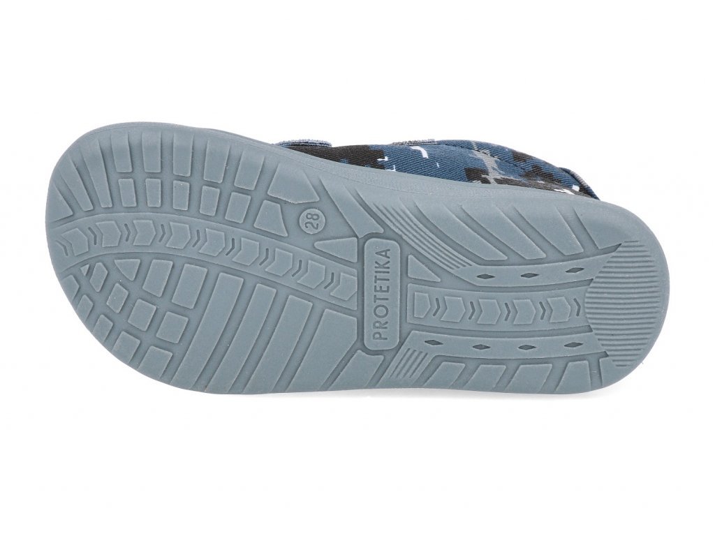 BAREFOOT boty/tenisky značky PROTETIKA jsou textilní botičky na jaro a léto. Jde o zcela nový model pro rok 2024, který má úplně novou podrážku a lepší tvar oproti starším modelům. Obuv má flexibilní podešev ve směru chůze i příčně a lehce zpevněnou patu, špička je anatomicky tvarovaná a zaručuje dostatek místa pro prsty, vhodná i pro dominantní palec. Oproti starším modelům jsou více flexibilnější, mírně širší v přední části a užší v patě. Zapínání na dva suché zipy, které zaručují dobrou regulaci výšky nártu a samozřejmostí je zvýšená okopová špička i vyvýšení v patě. Vnitřní část je textilní s vyjímatelnou koženou stélkou (netvarovaná). Podrážka je gumová s jemným vzorkem.