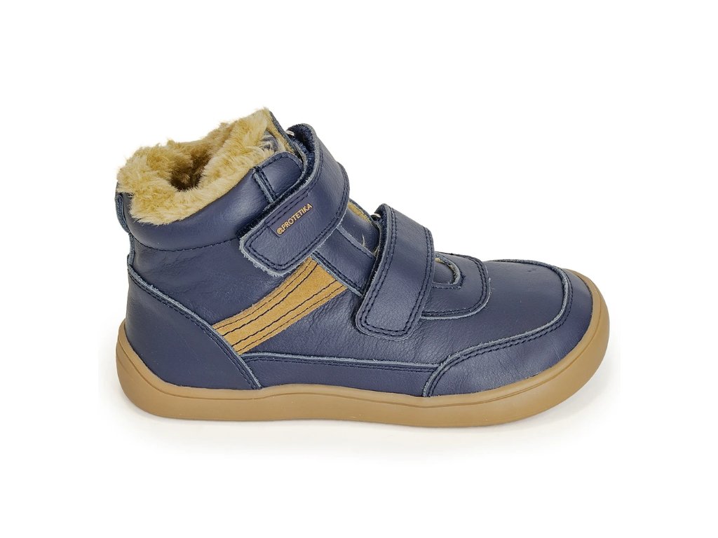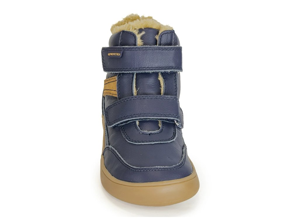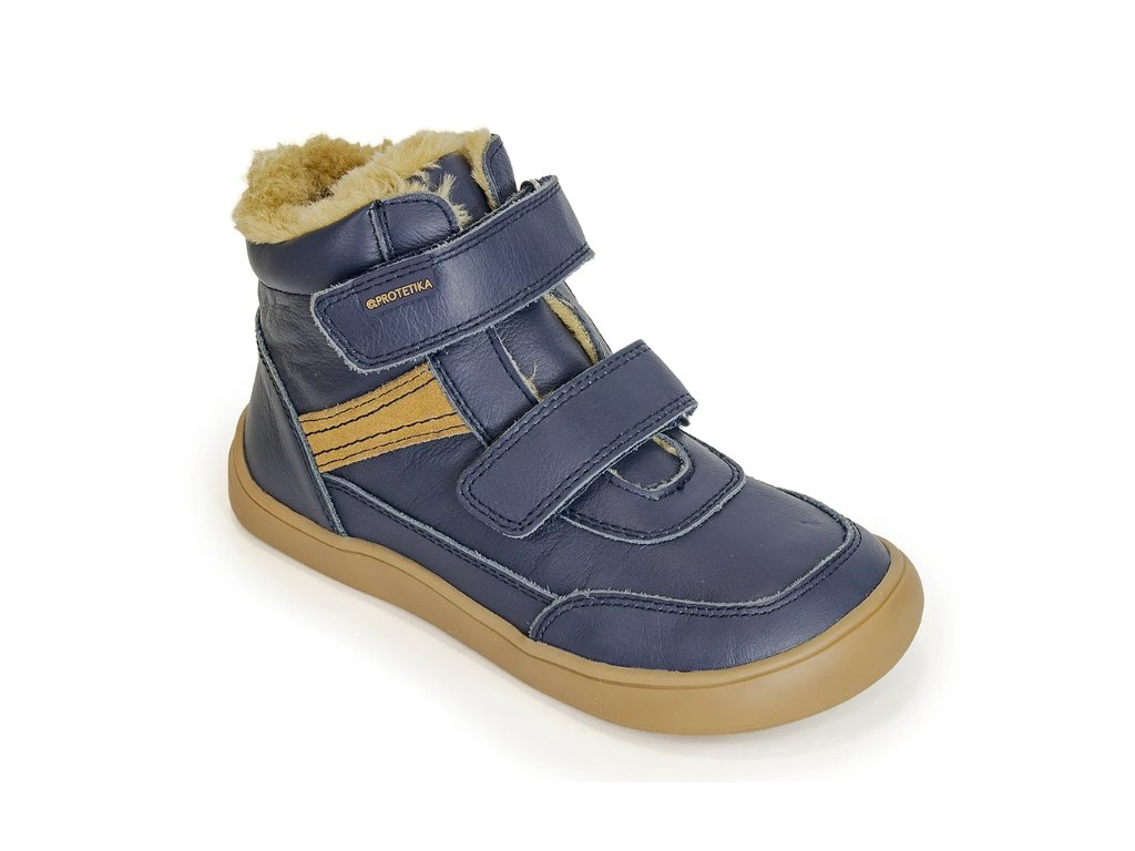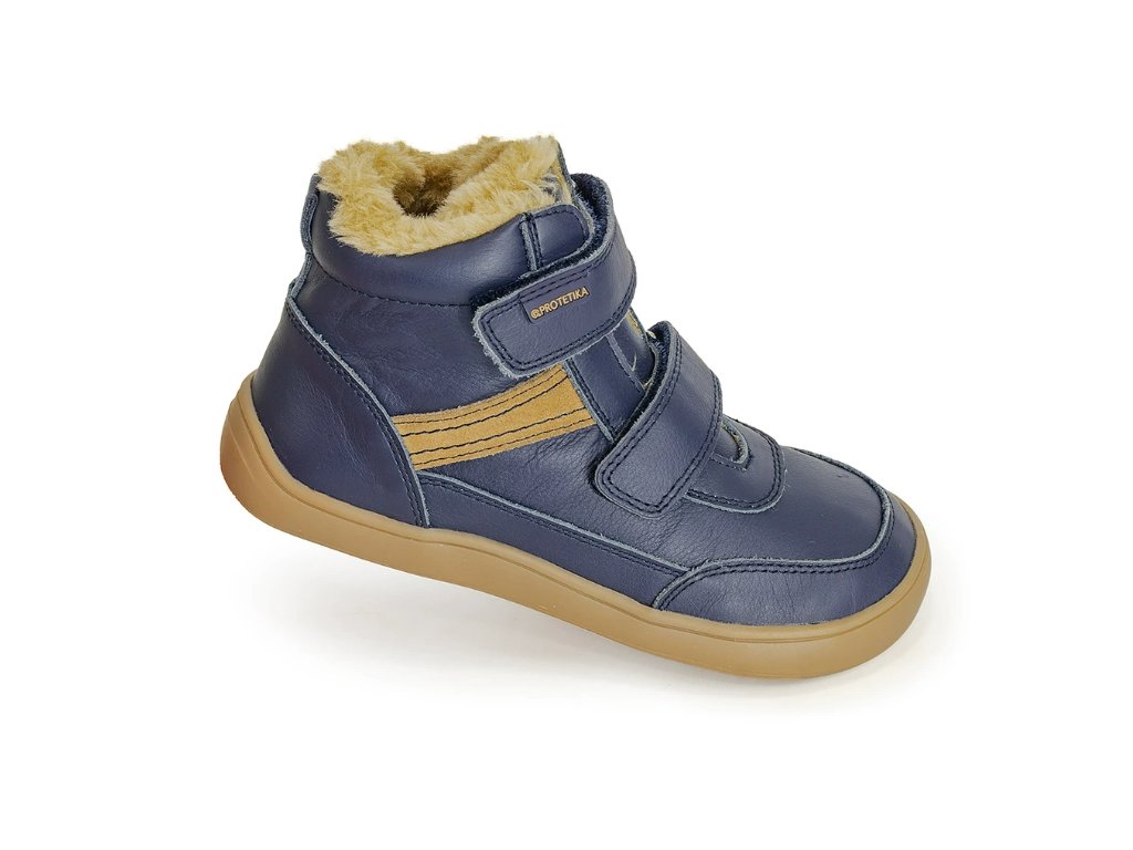 BAREFOOT zimní boty značky PROTETIKA jsou kožené botičky. Jde o zcela nový model pro rok 2023, který má úplně novou podrážku a lepší tvar oproti starším modelům. Obuv má flexibilní podešev ve směru chůze i příčně a lehce zpevněnou patu, špička je anatomicky tvarovaná a zaručuje dostatek místa pro prsty. Zapínání na dva suché zipy, které zaručují dobrou regulaci výšky nártu a samozřejmostí je zvýšená okopová špička i vyvýšení v patě. Svršek je z přírodní hladké kůže a textilu na jazyku, všitý jazyk zabraňuje vniknutí vlhkosti do boty, vnitřní část je ze syntetického kožíšku s vyjímatelnou fleecovou stélkou (netvarovaná). Podrážka je gumová.