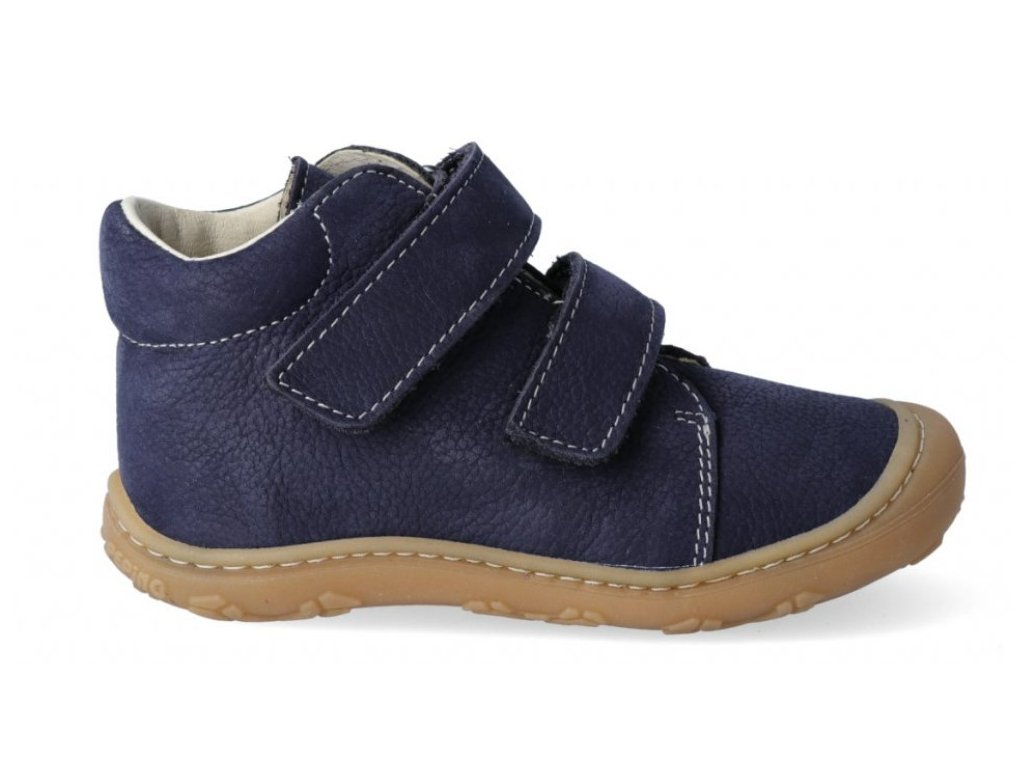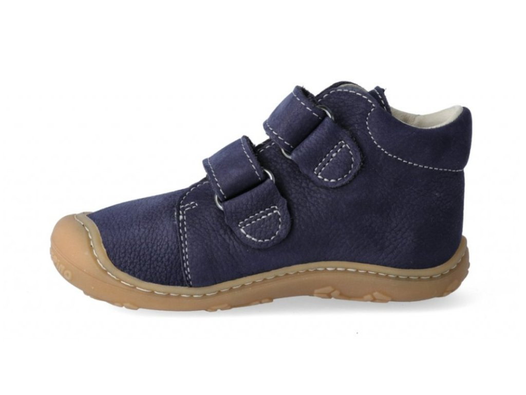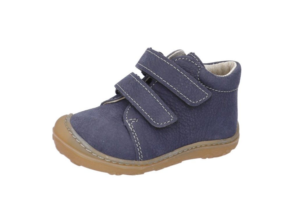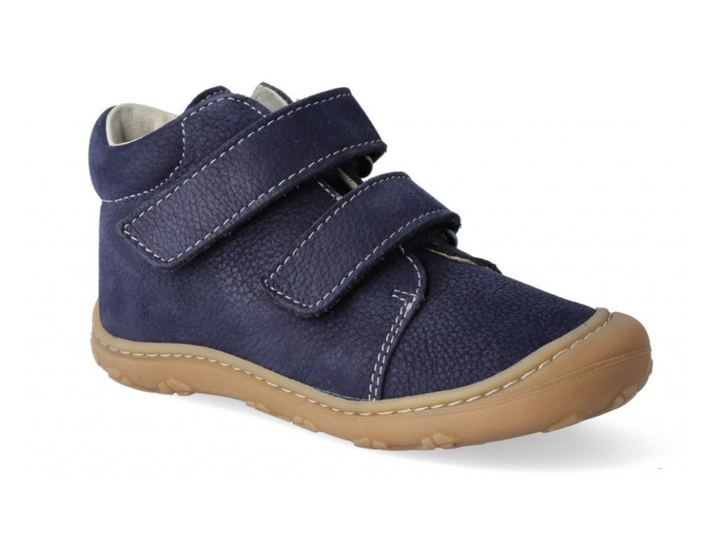 Dětská barefoot celoroční kotníková obuv německé značky Ricosta jsou krásně měkké a flexibilní botičky vhodné i pro začínající chodce. Svrchní materiál tvoří broušená kůže, podšívka je také kožená pro vyšší odolnost a prodyšnost. Boty jsou pouze šité, bez použití lepidla, tzn. ta nejšetrnější forma výroby pro nejmenší děti. Podešev je vyrobena z přírodního kaučuku, který je pevný ale pružný přírodní materiál a je protiskluzový. Praktický okop chrání botičku před odíráním, mají vyjímatelnou koženou stélku. Zapínání je na dva suché boty, lze je široce otevřít.