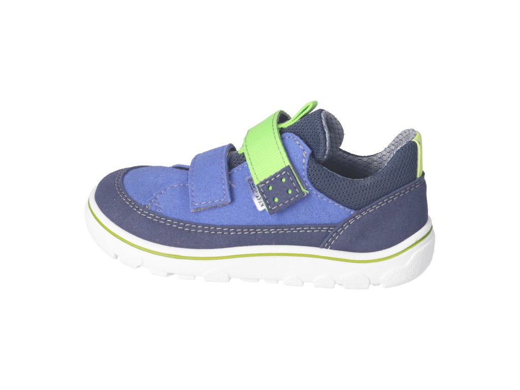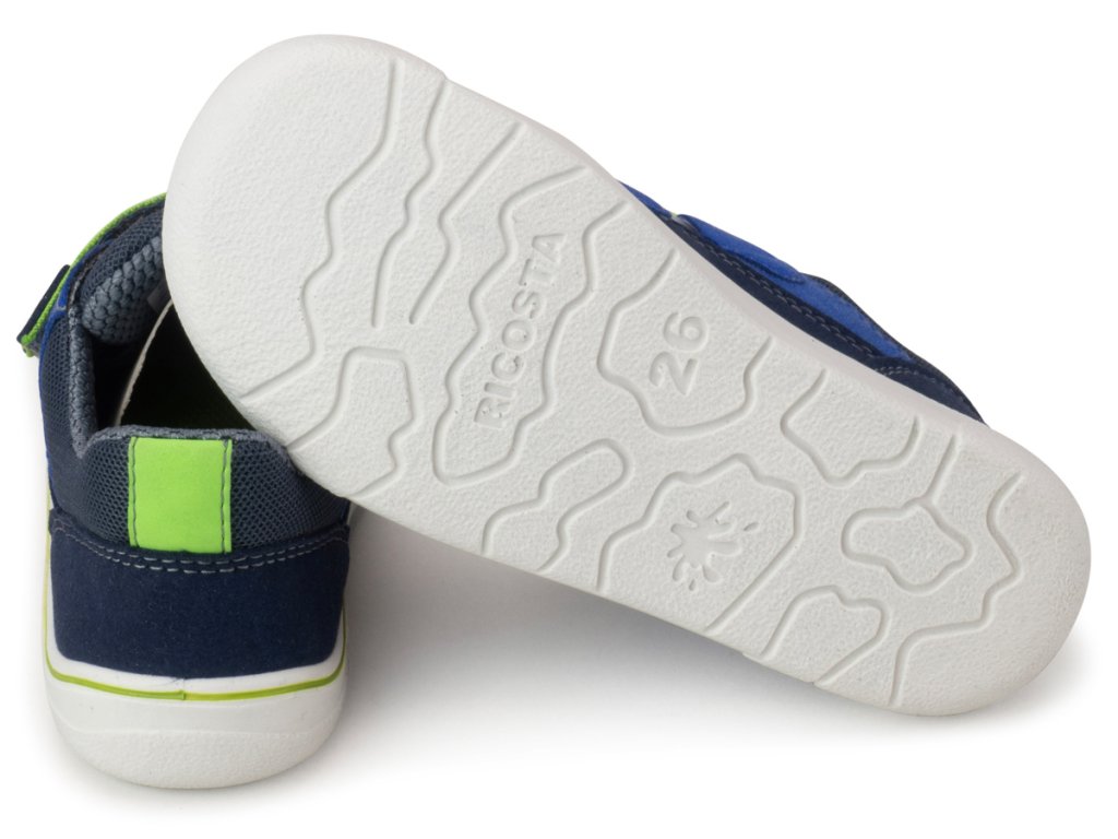 Dětské barefoot celoroční boty/tenisky německé značky Ricosta jsou krásně měkké a flexibilní botičky. Jsou absolutním hitem jara - speciálně uzpůsobené pro dětskou aktivitu na suchu i v mokru, jelikož mají voděodolnou membránu RicostaTEX, která je zároveň i prodyšná a udrží nožky teplé a suché. Obuv je veganská svršek je z kombinace textilie a veganské "kůže". Boty mají vstřikovanou podešev, tudíž jsou extrémně lehké. Podešev je vyrobena z , který je pevný ale pružný přírodní materiál a je protiskluzový. Praktický okop chrání botičku před odíráním. Zapínání je na dva suché boty, lze je široce otevřít.