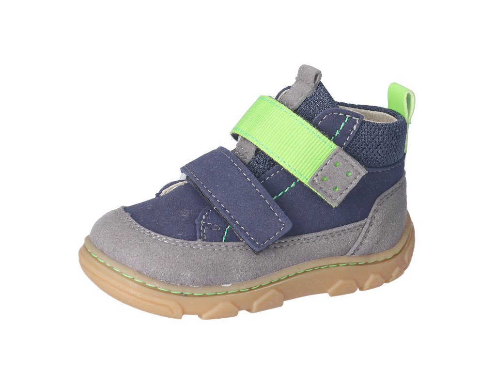 Dětská barefoot celoroční kotníková obuv německé značky Ricosta jsou krásně měkké a flexibilní botičky vhodné i pro začínající chodce. Svrchní materiál tvoří broušená kůže, podšívka je také kožená pro vyšší odolnost a prodyšnost. Boty jsou pouze šité, bez použití lepidla, tzn. ta nejšetrnější forma výroby pro nejmenší děti. Podešev je vyrobena z přírodního kaučuku, který je pevný ale pružný přírodní materiál a je protiskluzový. Praktický okop chrání botičku před odíráním, mají vyjímatelnou koženou stélku. Zapínání je na dva suché boty, lze je široce otevřít.