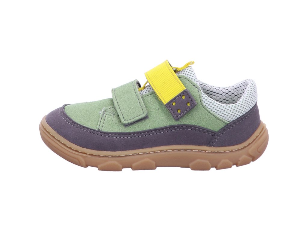 Dětská barefoot celoroční boty/tenisky německé značky Ricosta jsou krásně měkké a flexibilní botičky vhodné i pro začínající chodce. Svrchní materiál tvoří broušená kůže, podšívka je textilní pro vyšší odolnost a prodyšnost. Boty jsou pouze šité, bez použití lepidla, tzn. ta nejšetrnější forma výroby pro nejmenší děti. Podešev je vyrobena z přírodního kaučuku, který je pevný ale pružný přírodní materiál a je protiskluzový. Praktický okop chrání botičku před odíráním, mají vyjímatelnou koženou stélku. Zapínání je na dva suché boty, lze je široce otevřít.