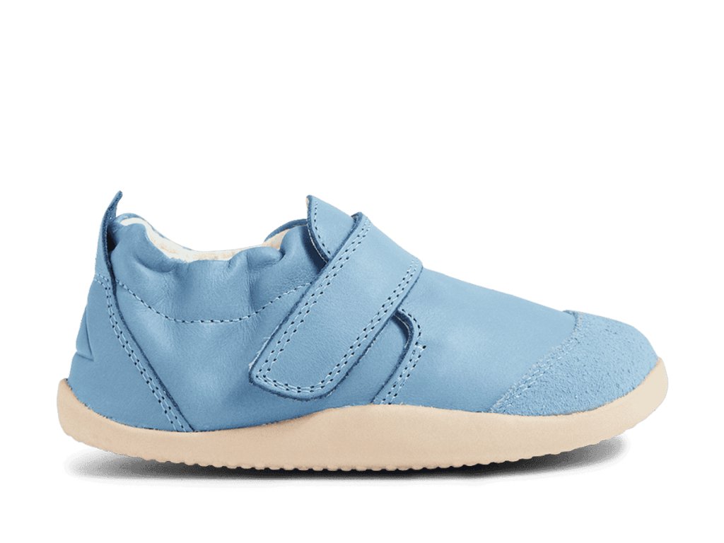 Dětské první botičky/capáčky pro nejmenší děti od značky Bobux jsou ideální pro první krůčky, jelikož jsou mimořádně lehké, měkké a ohebné. Mají opravdu tenkou gumovou podešev, napodobují chůzi naboso a jsou vhodné pro nejmenší děti, které se právě staví, dělají první krůčky a potřebují co nejměkčí botičky, které jim nebudou na nožkách překážet. Botičky nebudou nijak omezovat nožky dětí a umožní jim ten nepřirozenější pohyb. Sedí na užší a normální nožku, pro normální nárt a úzké kotníčky. Jsou vyrobeny z ultralehkých materiálů, speciální špička z odolného materiálu chrání botičku proti okopání. Svršek je z prvotřídní měkké kůže. Opatek je měkký.