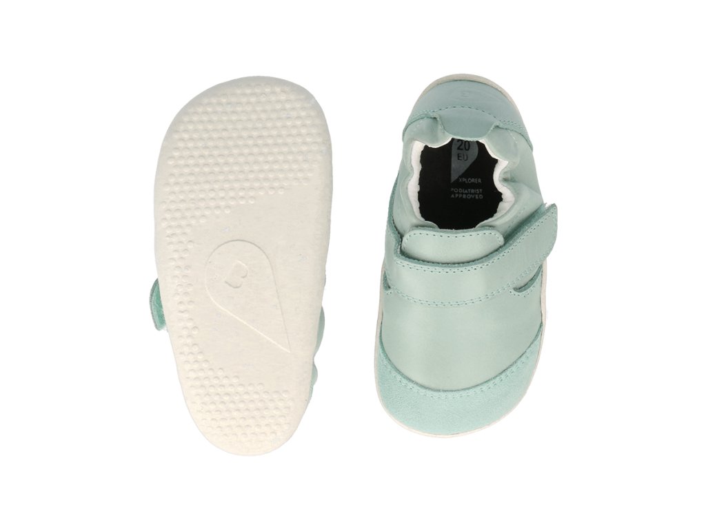Dětské první botičky/capáčky pro nejmenší děti od značky Bobux jsou ideální pro první krůčky, jelikož jsou mimořádně lehké, měkké a ohebné. Mají opravdu tenkou gumovou podešev, napodobují chůzi naboso a jsou vhodné pro nejmenší děti, které se právě staví, dělají první krůčky a potřebují co nejměkčí botičky, které jim nebudou na nožkách překážet. Botičky nebudou nijak omezovat nožky dětí a umožní jim ten nepřirozenější pohyb. Sedí na užší a normální nožku, pro normální nárt a úzké kotníčky. Jsou vyrobeny z ultralehkých materiálů, speciální špička z odolného materiálu chrání botičku proti okopání. Svršek je z prvotřídní měkké kůže. Opatek je měkký.