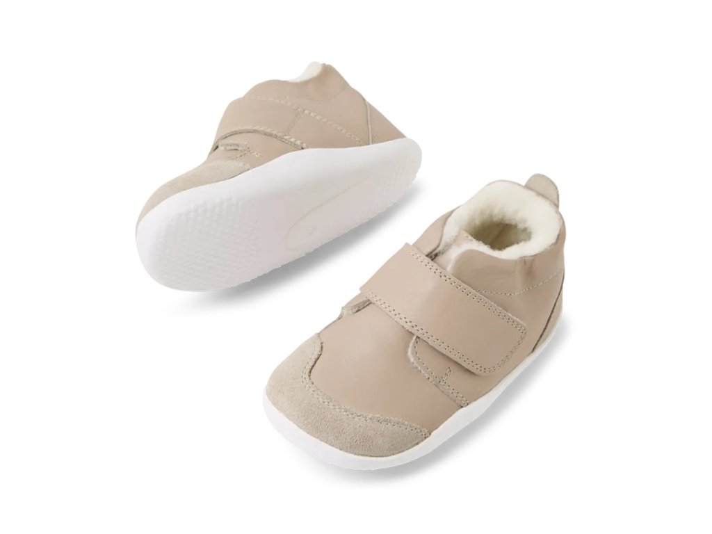 Zimní první botičky/capáčky pro nejmenší děti od značky Bobux jsou ideální pro první krůčky, jelikož jsou mimořádně lehké, měkké, ohebné a zateplené merino vlnou, která má vynikající termoregulační vlastnosti. Mají opravdu tenkou gumovou podešev, napodobují chůzi naboso a jsou vhodné pro nejmenší děti, které se právě staví, dělají první krůčky a potřebují co nejměkčí botičky, které jim nebudou na nožkách překážet. Botičky nebudou nijak omezovat nožky dětí a umožní jim ten nepřirozenější pohyb. Sedí na užší a normální nožku, pro normální nárt a úzké kotníčky. Jsou vyrobeny z ultralehkých materiálů, speciální špička z odolného materiálu chrání botičku proti okopání. Svršek je z prvotřídní měkké kůže. Opatek je měkký.