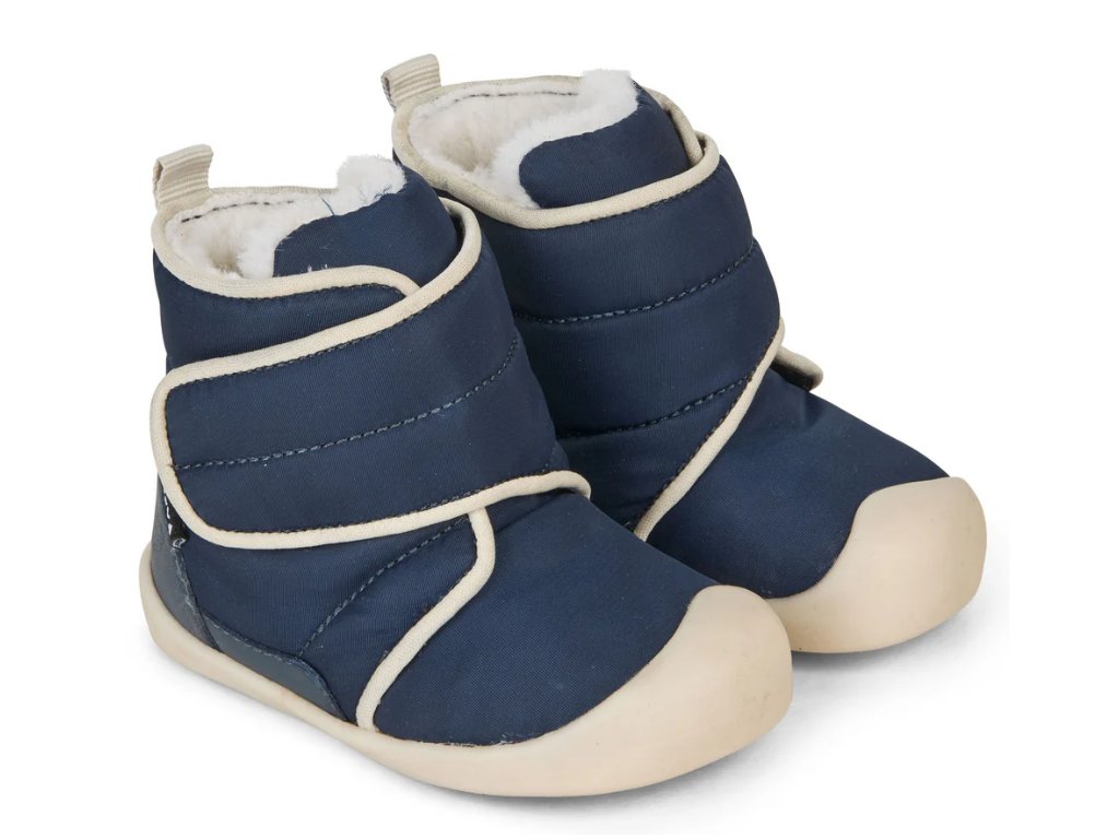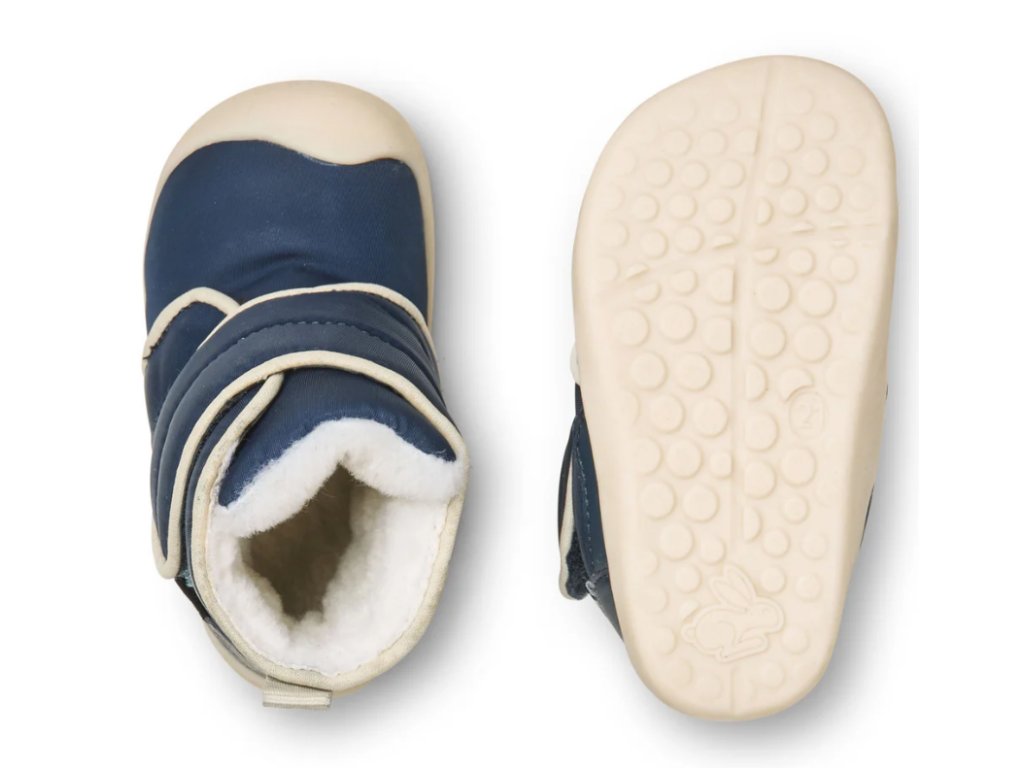 Barefoot zimní boty/sněhule značky Bundgaard jsou měkké, pohodlné boty s flexibilní gumovou podrážkou vhodné i pro ty nejmenší nožičky do mrazivého počasí. Botičky jsou z novinkou roku 2025, jsou širší v prstové části. Mají membránu pro vyšší voděodolnost, jsou zateplené ovčím kožíškem v celém vnitřku boty, vyjímatelná termoizolační stélka se zateplením, přesah podrážky přes špičku. Jsou vyrobeny z velmi odolného textilního materiálu. Botičky mají zpočátku tužší podrážku, ale chozením změkne, nulový drop. Zapínání je na jeden velký suchý zip, kterým nožku krásně utáhnete, jsou prostorné v oblasti kotníku na širší nožky, jsou dostatečně široké v oblasti prstů, vhodné i na dominantní palec a mírně zúžené v patě. Botičky mají pevnější opatek a jsou vhodné i pro začínající chodce.