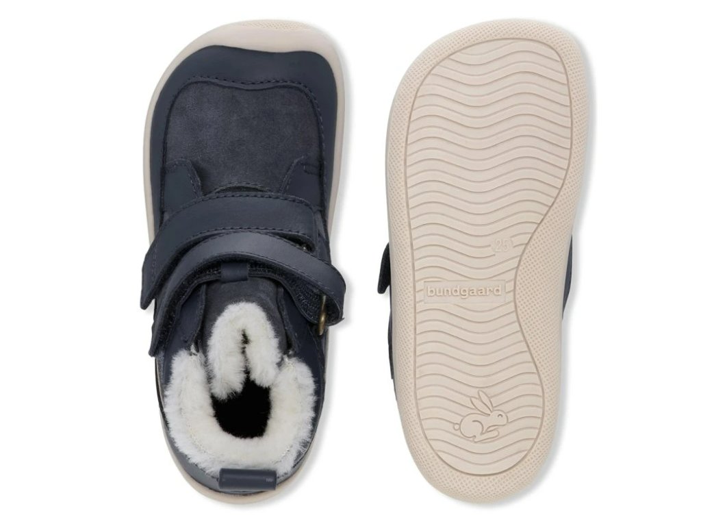 Dětské zimní kožené boty značky Bundgaard jsou zateplené ovčí vlnou a mají membránu pro vyšší voděodolnost. Podrážka je v přední části více vytažena a kryje tak špičku boty, která je díky tomu více chráněna před poničením, stejně tak je mírně vyvýšená za patou. Boty mají pevnější opatek, kolem kotníků jdou velmi dobře utáhnout. Zapínání je na dva suché zipy, které umožňují dostatečnou regulaci na nízký nárt, ale je možnost povolit i pro nárt vyšší, lze je široce otevřít, čímž je jednoduché obouvání/vyzouvání. Mají vyjímatelnou termoizolační stélku se zateplením. Jsou vyrobeny z kombinace hladké a broušené kůže, velmi odolný materiál. Botičky mají zpočátku tužší protiskluzovou podrážku, ale chozením změkne. Vyztužení špičky poskytuje prostor a ochranu prstů na nohou.