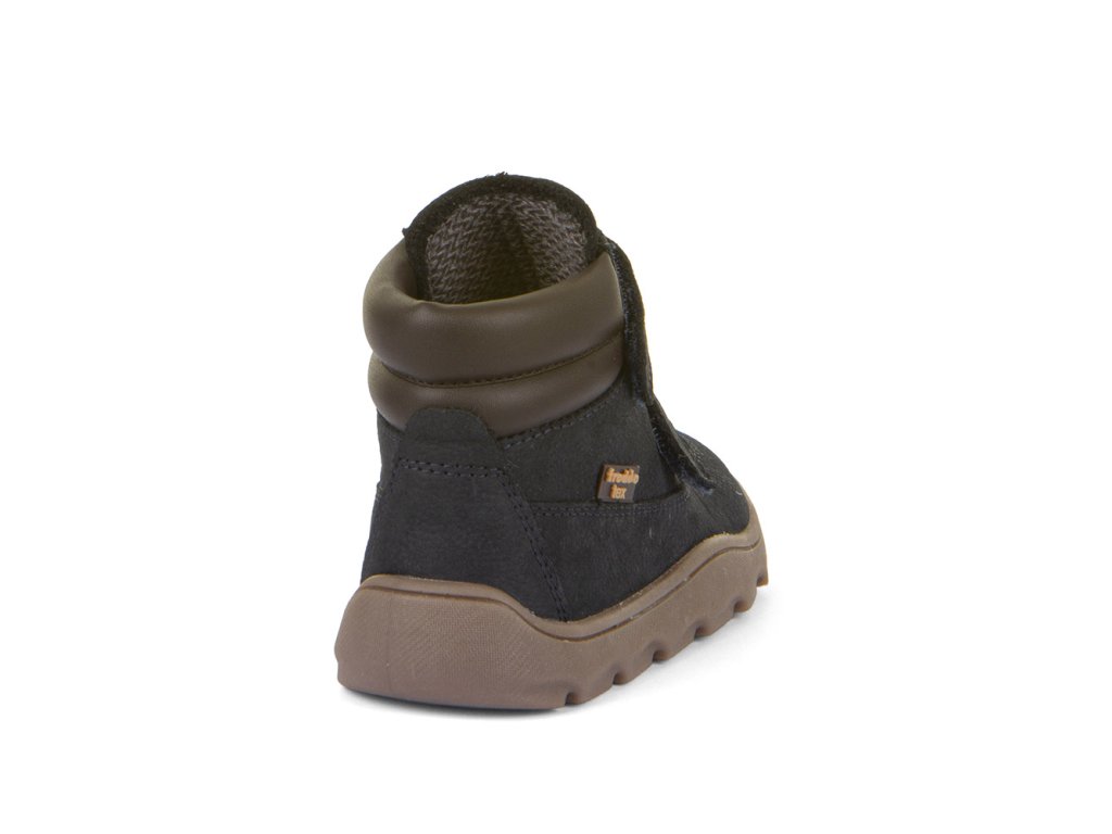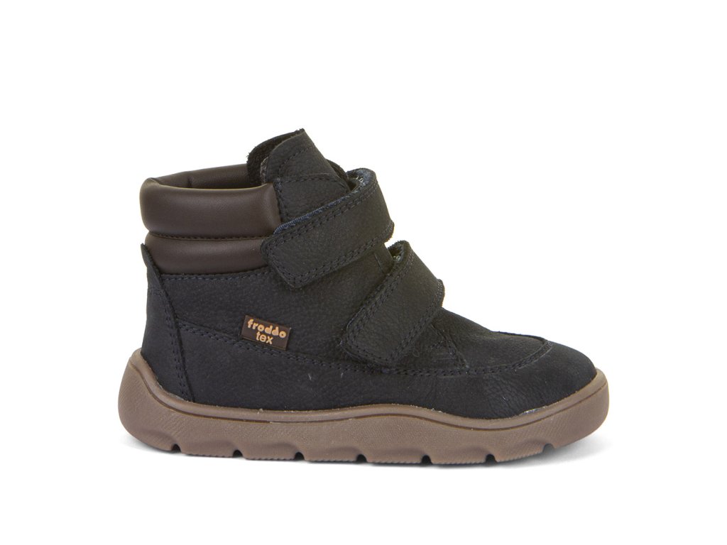 Barefoot podzimní kotníkové boty od chorvatské značky Froddo s nepromokavou membránou FRODDO TEX jsou z nové modelové řady, která má nový typ podrážky Zeru - extra odolná a flexibilní. Botičky jsou měkké, lehké a ohebné všemi směry, i když se zpočátku zdá podrážka tužší, nošením velmi rychle změkne. Svršek je vyroben z vysoce kvalitní přírodní kůže, která odpuzuje vodu (hydrofobní nubuk) a neobsahuje nebezpečné látky a sloučeniny, materiál je velmi příjemný a odolný, podšívka je textilní. Boty mají vyjímatelnou plochou antibakteriální stélku z mikrovlákna. Tvar špičky poskytne dostatek prostoru dětským prstíkům, praktické přetažení gumy přes špičku (ochrana před promáčením a odíráním). Nohy mohou vnímat povrch po kterém chodí díky rovné a tenké podrážce. Boty mají nulový drop, nová extra přilnavá podrážka, která neklouže.