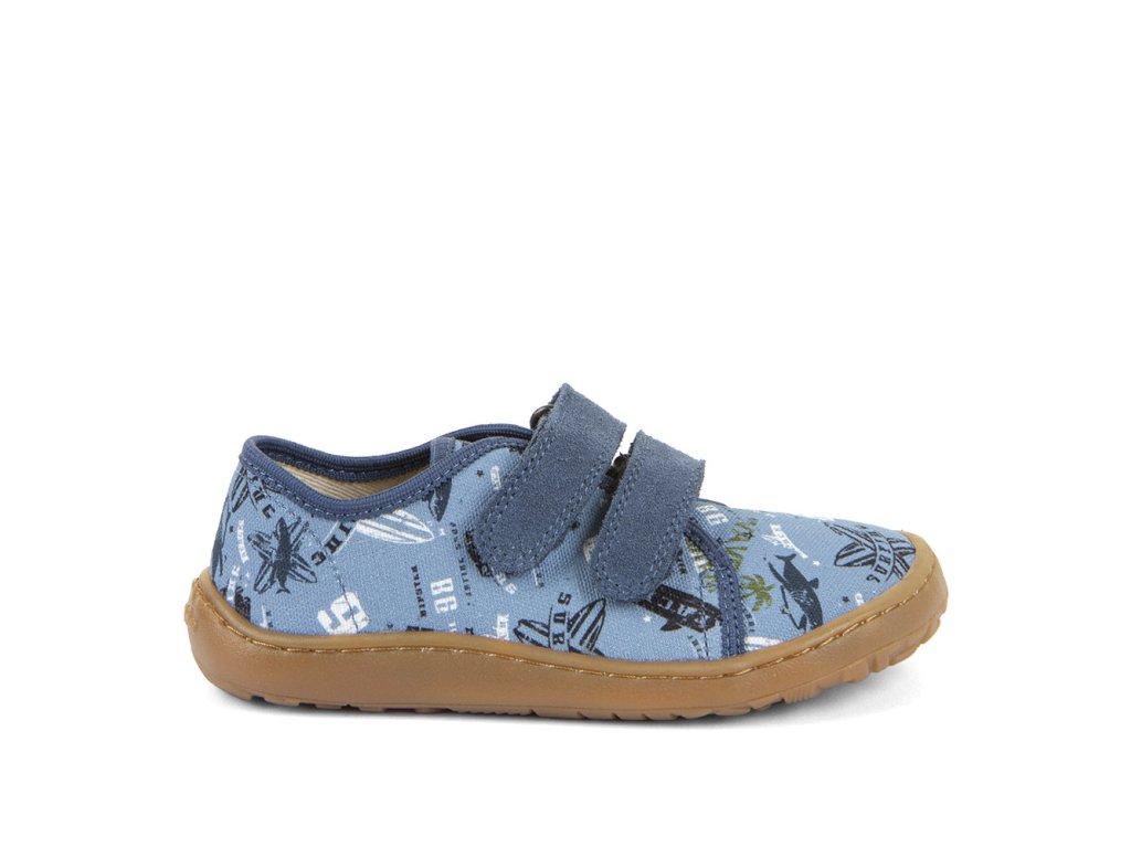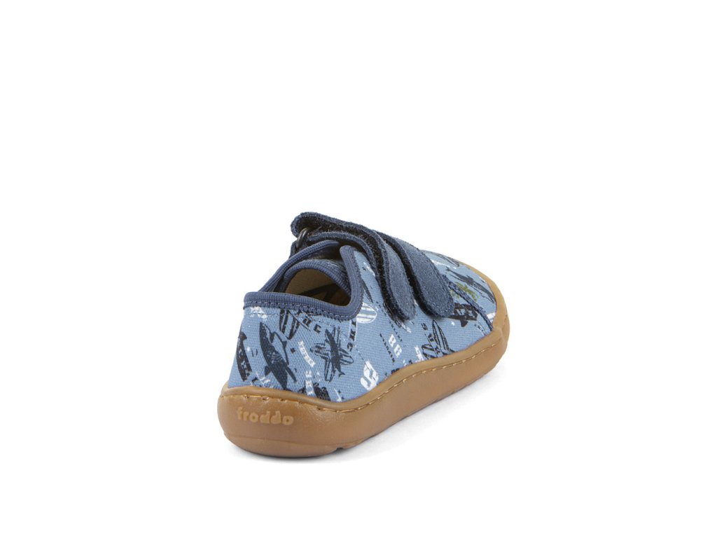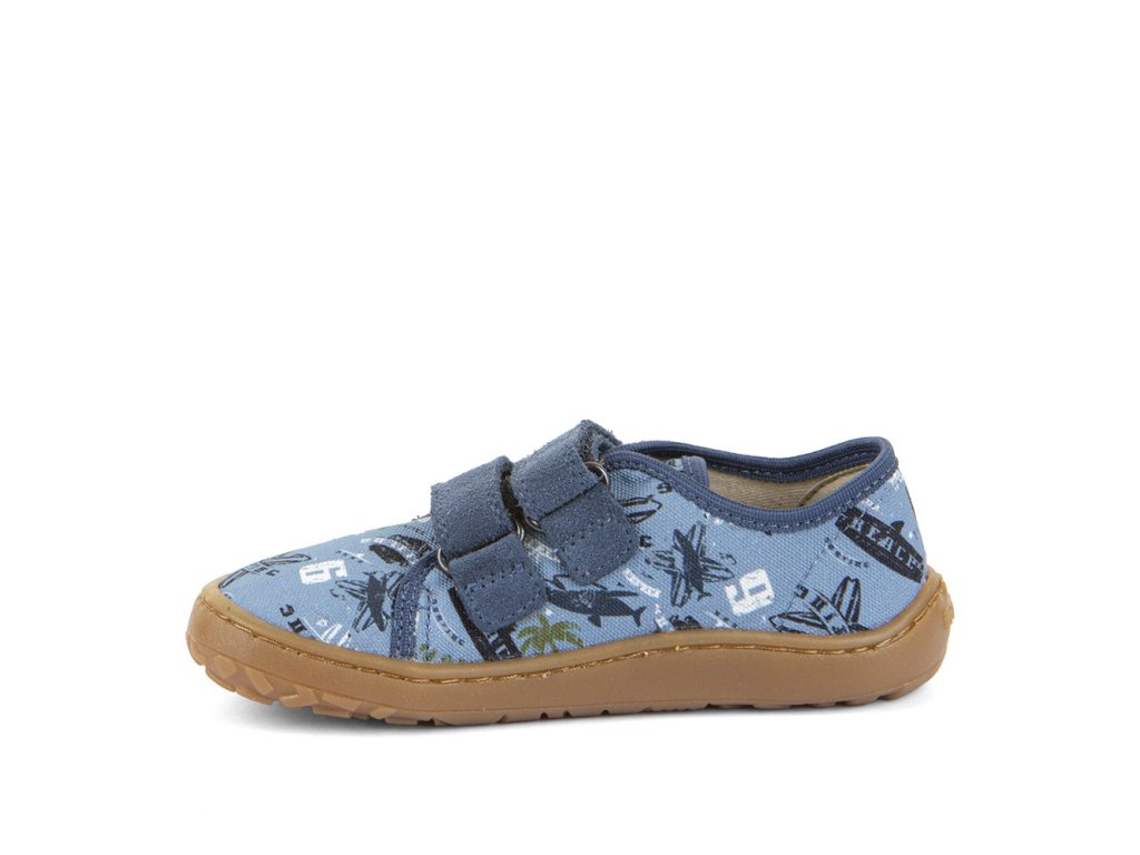 Barefoot plátěné tenisky od chorvatské značky Froddo jsou lehké, měkké a zajišťují maximální prodyšnost. Plátěnky mají flexibilní podešev ohebnou všemi směry. Svršek je vyrobený z prodyšného plátna, podrážka je z přírodní gumy a je z části k podrážce kromě lepení i přišitá. Vyjímatelná stélka z mikrovlákna, s nášlapnou vrstvou z kůže. Anatomicky tvarovaná špička, která poskytne dostatek prostoru pro dětské prsty. Zapínání je na dva suché zipy pro snadné dotažení v nártu. Mají lehce zpevněný opatek a nulový drop.