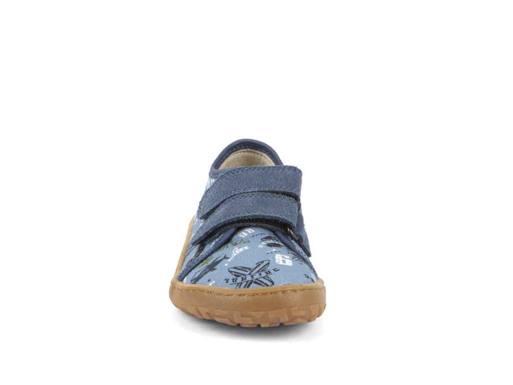 Chlapecké plátěné barefoot tenisky FRODDO nízké - modré s letadly.