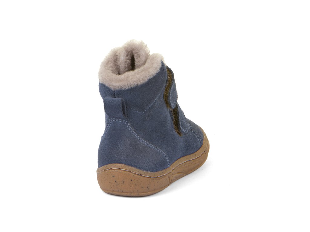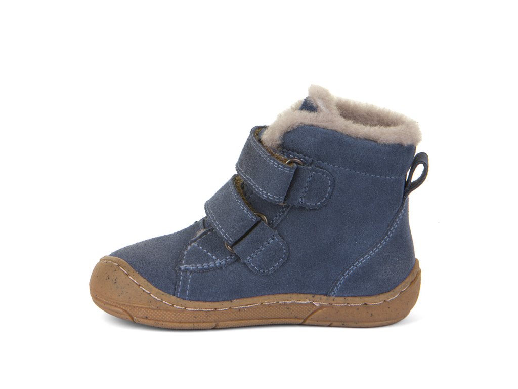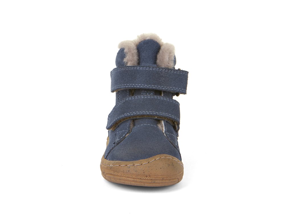 Zimní kotníkové kožené boty zateplené ovčí kožešinkou od chorvatské značky Froddo jsou extrémně měkké, lehké a ohebné. Boty jsou vyrobeny z vysoce kvalitního vodoodpudivého veluru/semiše, který neobsahuje nebezpečné látky a sloučeniny, je velmi příjemný a odolný. Anatomický tvar špičky poskytne dostatek prostoru dětským prstíkům, praktické přetažení gumy přes špičku (ochrana před promáčením a odíráním), podrážka je gumová, měkká a extra flexibilní. Podšívka i stélka je z ovčí kožešiny. Sedí na užší a střední nohu, užší v patě a v kotníku, vhodné jsou na normální nárt. Zapínání je na dva suché zipy pro snadné dotažení v nártu.