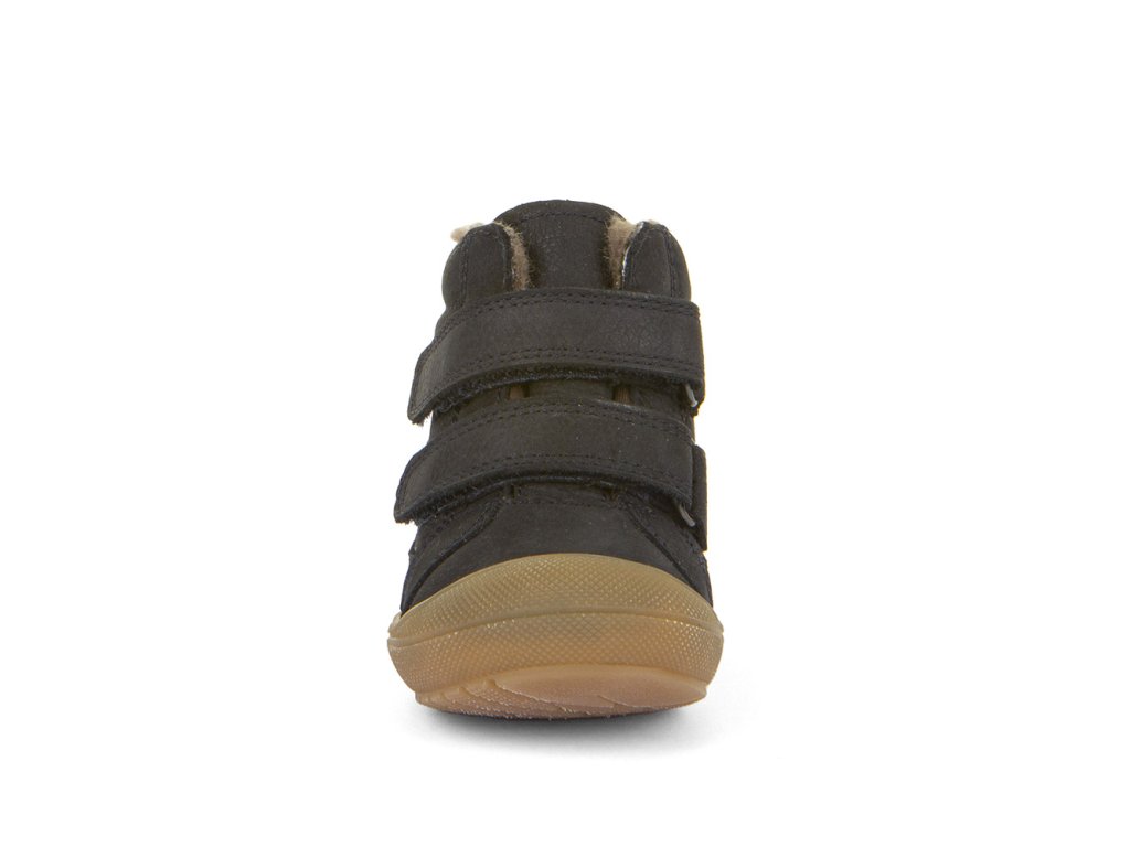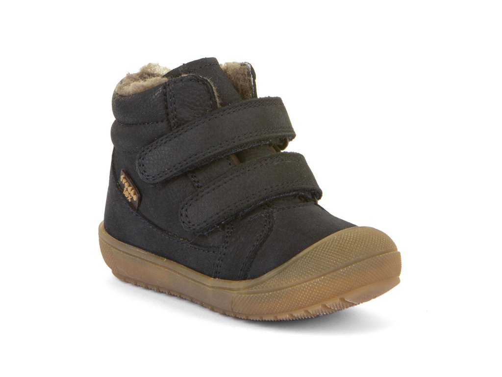 Zimní kotníkové kožené boty zateplené ovčí kožešinkou od chorvatské značky Froddo jsou extrémně měkké, lehké a ohebné. Boty mají voděodolnou membránu, jsou vyrobeny z vysoce kvalitní přírodní kůže, která neobsahuje nebezpečné látky a sloučeniny, je velmi příjemná a odolná. Anatomický tvar špičky poskytne dostatek prostoru dětským prstíkům, praktické přetažení gumy přes špičku (ochrana před promáčením a odíráním), podrážka je gumová, měkká a extra flexibilní, pevnější opatek. Podšívka i stélka je z ovčí kožešiny. Sedí na užší a střední nohu, užší v patě a v kotníku, vhodné jsou na normální nárt. Zapínání je na dva suché zipy pro snadné dotažení v nártu.