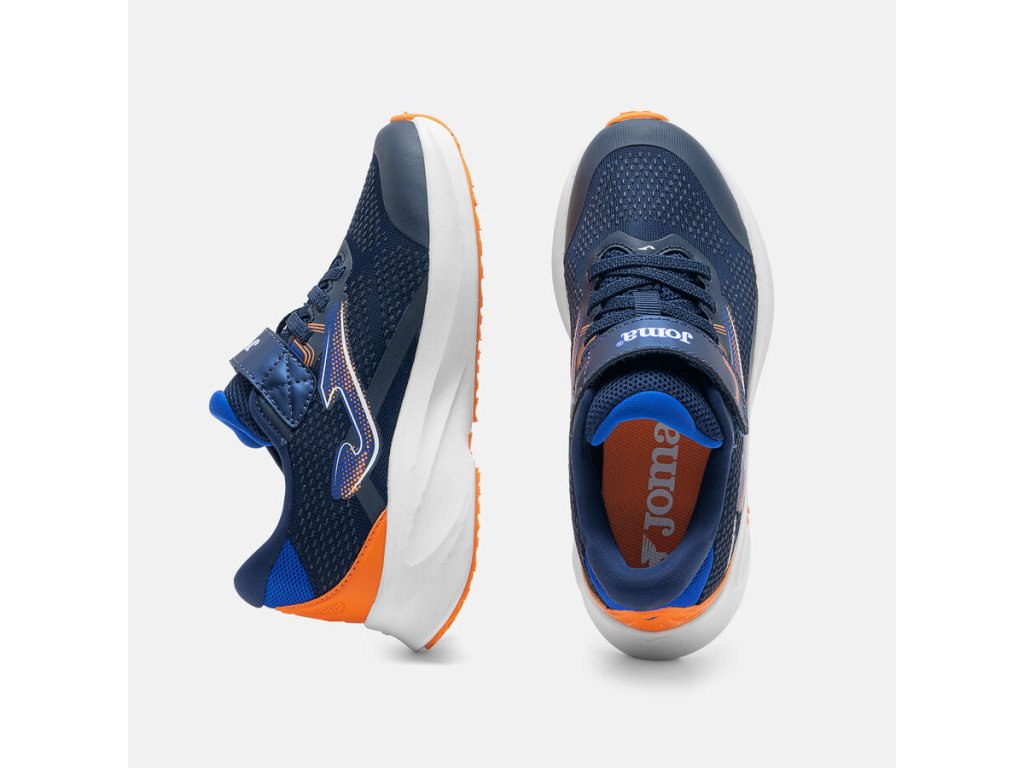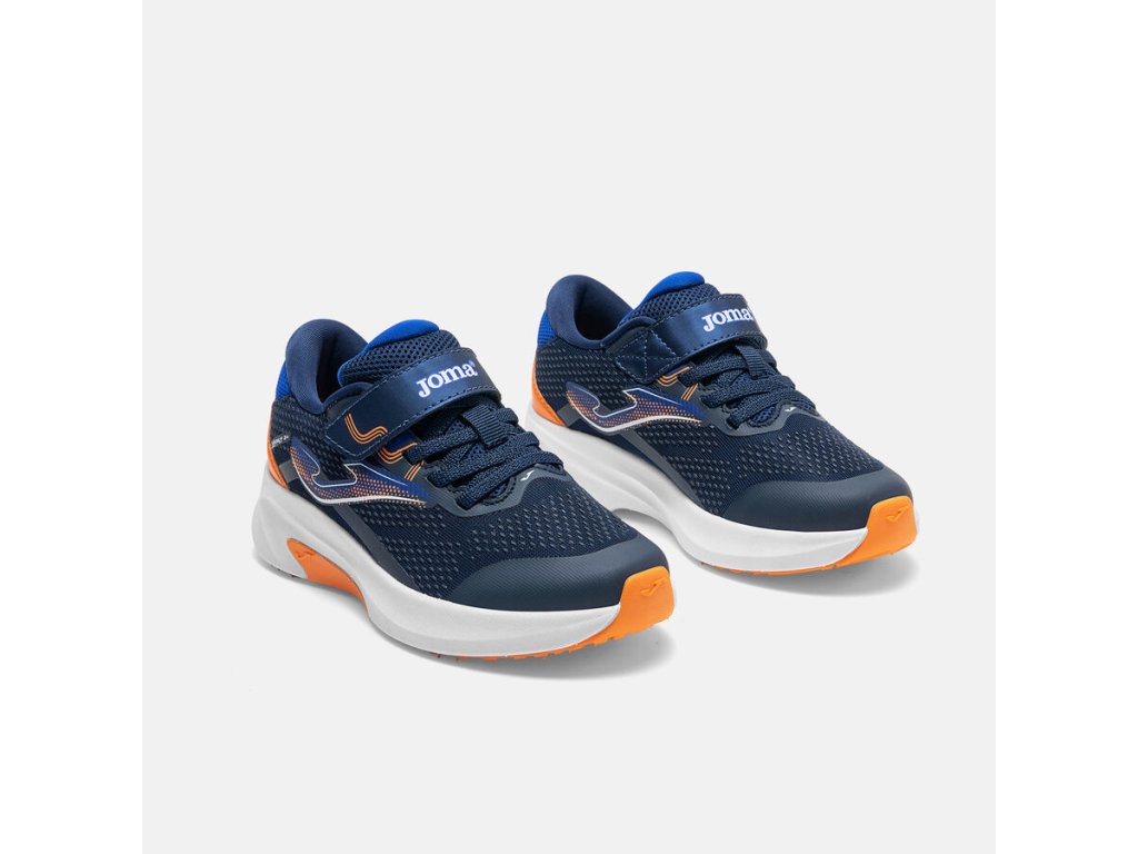 Extra lehká sportovní obuv španělské značky Joma. Lehký a prodyšný materiál, tenisky disponují non-marking podrážkou, která nezanechává šmouhy, ideální na sportovní venkovní aktivity. Jsou vhodné i do terénu, trailová podrážka s hrubším vzorkem tlumí nárazy. Boty mají příjemné polstrování v oblasti paty pro větší komfort při chůzi a sportování. Tenisky mají pevnou patu a velice příjemnou textilní podšívku. Svršek je z odolné textilie v kombinaci se syntetikou. Podrážka má v přední části gumový okop pro lepší akceleraci a na patě gumový díl, který tlumí nárazy na patu. Boty jsou lehké a velmi dobře profilované. Vyjímatelná textilní stélka bez tvarování a bez podpory klenby. Praktické zapínání na jeden suchý zip a gumové tkaničky, které se přizpůsobí výšce nártu. Boty jsou skvělé pro mnoho dětských aktivit.