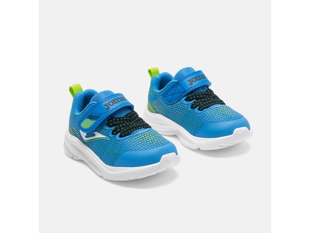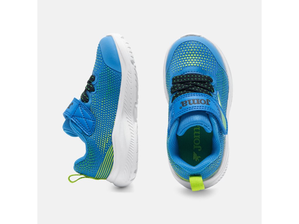 Extra lehká sportovní obuv španělské značky Joma. Lehký a prodyšný materiál, tenisky disponují non-marking podrážkou, která nezanechává šmouhy, ideální na sportovní venkovní aktivity. Jsou vhodné i do terénu, trailová podrážka s hrubším vzorkem tlumí nárazy. Boty mají příjemné polstrování v oblasti paty pro větší komfort při chůzi a sportování. Tenisky mají pevnou patu a velice příjemnou textilní podšívku. Svršek je z odolné textilie v kombinaci se syntetikou. Podrážka má v přední části gumový okop pro lepší akceleraci a na patě gumový díl, který tlumí nárazy na patu. Boty jsou lehké a velmi dobře profilované. Vyjímatelná textilní stélka bez tvarování a bez podpory klenby. Praktické zapínání na jeden suchý zip a gumové tkaničky, které se přizpůsobí výšce nártu. Boty jsou skvělé pro mnoho dětských aktivit.