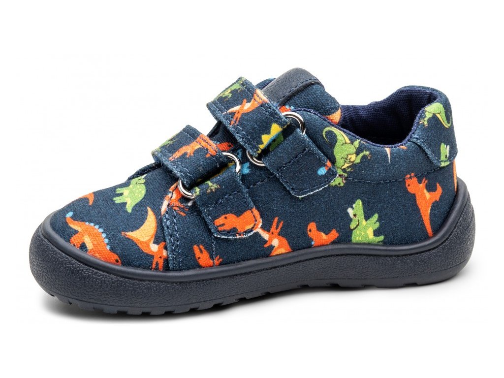 BAREFOOT plátěné tenisky značky PROTETIKA jsou textilní botičky na jaro a léto. Jde o nový model který má novou podrážku a lepší tvar oproti starším modelům. Obuv má flexibilní podešev ve směru chůze i příčně a zpevněnou patu, špička je anatomicky tvarovaná a zaručuje dostatek místa pro prsty, vhodná i pro dominantní palec. Oproti starším modelům jsou více flexibilnější, mírně širší v přední části a užší v patě. Zapínání na dva suché zipy, které zaručují dobrou regulaci výšky nártu a samozřejmostí je zvýšená okopová špička i vyvýšení v patě. Svršek je textilní, vnitřní část je také textilní s vyjímatelnou koženou stélkou (netvarovaná). Podrážka je gumová s jemným vzorkem.