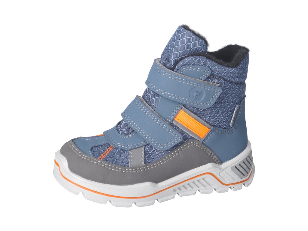 Dětská zimní kotníková obuv německé značky Ricosta je absolutním hitem zimy - speciálně uzpůsobené pro dětskou aktivitu na suchu i v mokru, jelikož mají voděodolnou membránu SympaTEX, která je zároveň i prodyšná a udrží nožky teplé a suché. Boty jsou velmi lehké a ohebné díky odlehčené nástřikové polyuretanové podešvi, která zajistí maximální pohodlí při nošení a děti je na noze ani neucítí, mají reflexně bezpečnostní prvky. Svršek boty je vyroben z velmi odolné (High-Tech) textilie, praktický gumový okop je téměř po celém obvodu boty. Vnitřní část je zateplena jehněčí vlnou i stélka, mají pevný opatek. Zapínání je na dva suché zipy.