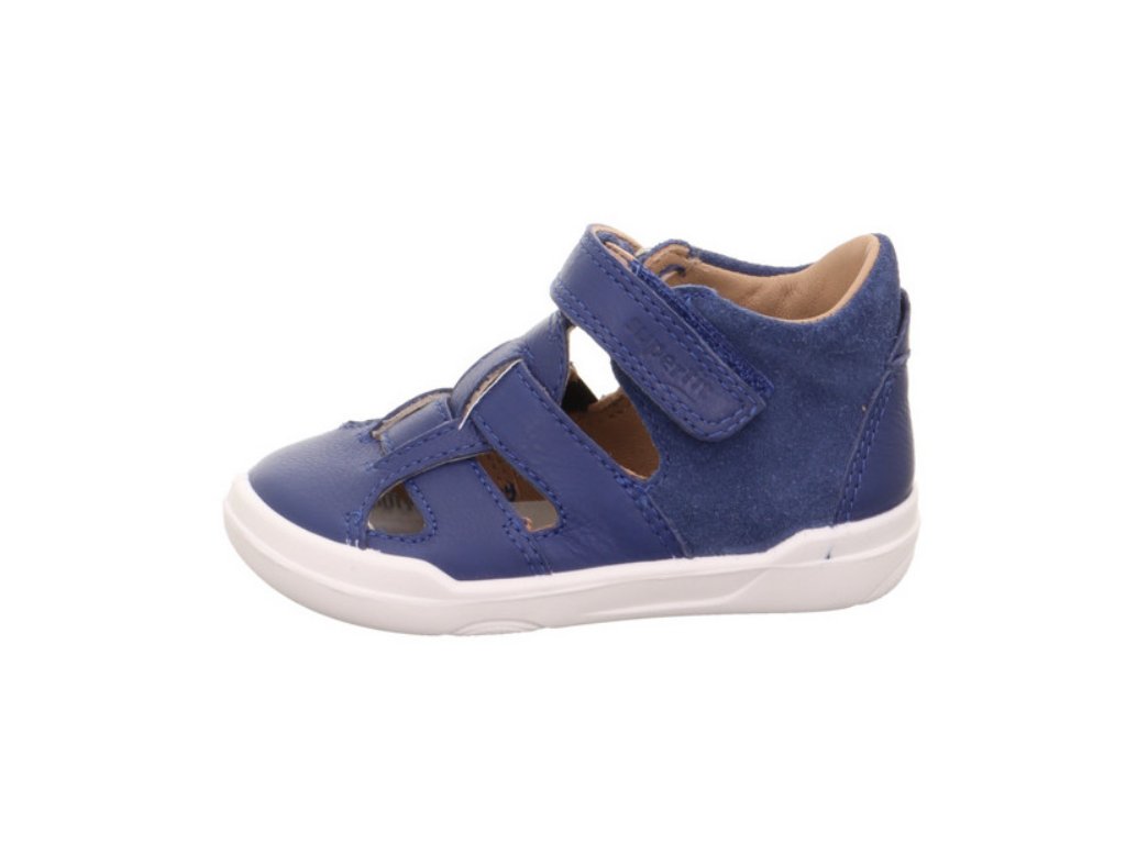 Letní dětské sandálky rakouské značky Superfit jsou vyrobeny z nové kolekce BAREFIT - nový tvar podešve s kulatou prostornou špičkou, která zaručuje dostatečný prostor pro prsty. Tento model je možné zařadit jako barefootový kompromis. Botičky zaujmou svojí flexibilitou a lehkostí. Boty jsou krásně designově propracované. Podešev je extrémně měkká a ohebná, což umožnuje přirozený pohyb. Botičky mají svršek v kombinaci hladké a broušené kůže i vnitřní část je z hladké přírodní kůže, špička má mírný pogumovaný okop a lehce zpevněný opatek. Kožená stélka je vyjímatelná a anatomicky tvarovaná. Sandálky jdou krásně utáhnout okolo kotníku a v nártu je gumička.