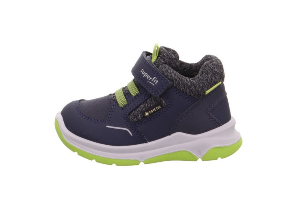 Celoroční dětská obuv/tenisky rakouské značky Superfit s nepromokavou membránou GORE-TEX® jsou vyrobeny z extra měkké kůže a textilu. Boty jsou pro chladnější podzim a začátek zimy, jelikož jsou vevnitř zateplené fleecem. Boty jsou ve sportovnějším stylu a zaujmou svojí flexibilitou, lehkostí a přirozeností. Tenisky se snadno obouvají jelikož jsou jen na jeden suchý zip a přes nárt hezky drží díky gumovým tkaničkám, takže jsou perfektní pro každého předškoláka. Fleecová podšívka spolu s membránou zaručuje komfort teplých a suchých nožek. Podešev nabízí dokonalé odpružení díky flex zónám a umožnují tak přirozený pohyb. Botičky mají pevný polstrovaný opatek - pro lepší fixaci nohy, špička má mírný pogumovaný okop. Fleecová stélka je vyjímatelná a anatomicky tvarovaná. Pro svoji extrémní lehkost a fixaci nohy jsou doporučovány ortopedy.