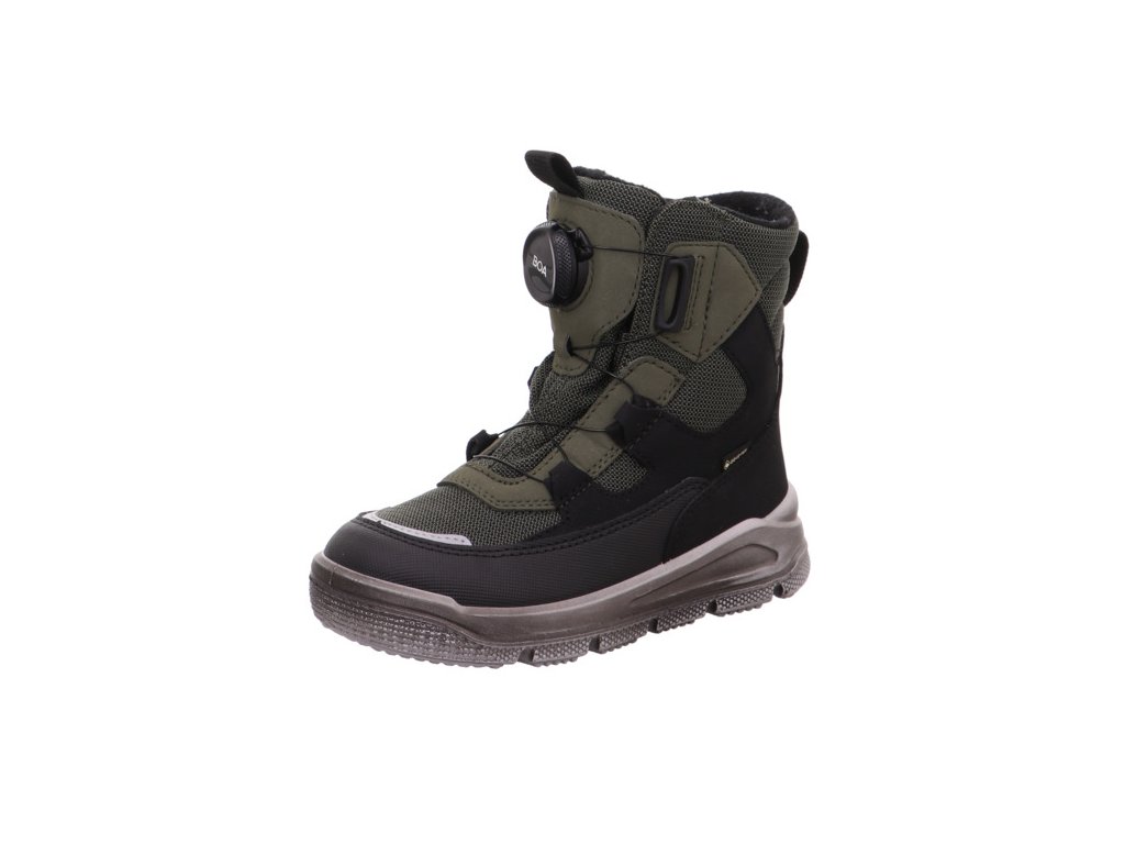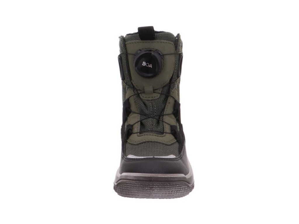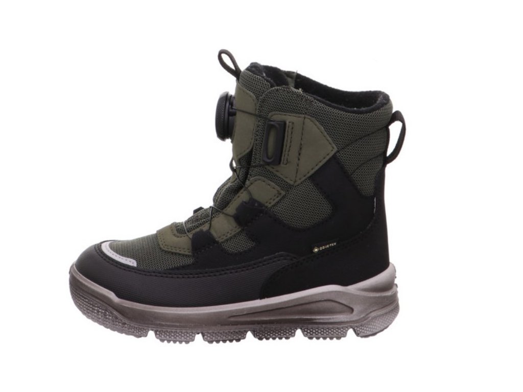 Zimní dětská obuv rakouské značky Superfit s nepromokavou membránou GORE-TEX® .a zapínáním BOA® Boty jsou středně vysoké a vyrobené na středně široké chodidlo. Jednoduché a pohodlné zapínání BOA funguje na principu navíjení lanka na kolečko. Jednoduchým otáčením navíjejícího kolečka se lanko utahuje a díky tomu je noha rovnoměrně utažena. Výsledkem je vyšší stupeň pohodlí a utažená bota se navíc sama nepovoluje. Vytažením kolečka se naopak lanko uvolní. Hezky se přizpůsobí nártu a lze je snadno utáhnout tak, jak je potřeba. Sněhule mají zvýšenou velmi lehkou podešev s hrubším vzorem, která izoluje teplo a je dobře stabilní na sněhu a ledu. Svršek je ze syntetiky a textilu, vnitřní část je zateplena textilní PU kožešinou a spolu s prodyšnou a nepromokavou membránou zaručují komfort teplých a suchých nožek. Boty mají polstrovaný pevnější opatek - pro lepší fixaci nohy, špička má pogumovaný okop. Vyjímatelná stélka je zateplená. Sněhule jsou extrémně odolné vůči nepříznivému počasí, jako je déšť, sníh a mráz. U značky Superfit je nadstandardně provedené spojení jazyku s pevnou části obuvi vložením GORE-TEX® látky, která zabraňuje vniknutí vody, sněhu a nečistot do obuvi. Sněhule jsou vhodné pro běžné zimní radovánky a aktivní zimní sporty.