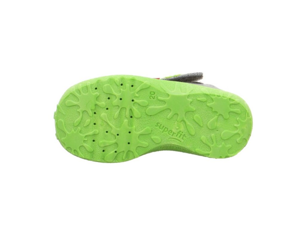 Dětské papučky rakouské značky Superfit se zapínáním na suchý zip, díky kterému se dají krásně regulovat v oblasti nártu. V okolí kotníku je mírné vykrojení a tím bota lépe padne. Papučky jsou pohodlné, jelikož krásně kopírují tvar nohy i kotníku, jsou velmi ohebné a přizpůsobivé. Podrážka je měkká, v přední části krásně ohebná, s větracími otvory pro lepší prodyšnost. V přední i zadní části je podrážka vyvýšená, chrání tak proti okopu. Vnitřní část je z textilu, mírné zpevnění v místě, kde je podrážka vyvýšená. Podešev je vstřikovaná - velmi lehká, ohebná, ventilační otvory v přední části pro zmírnění pocení nohou, nedělá šmouhy.