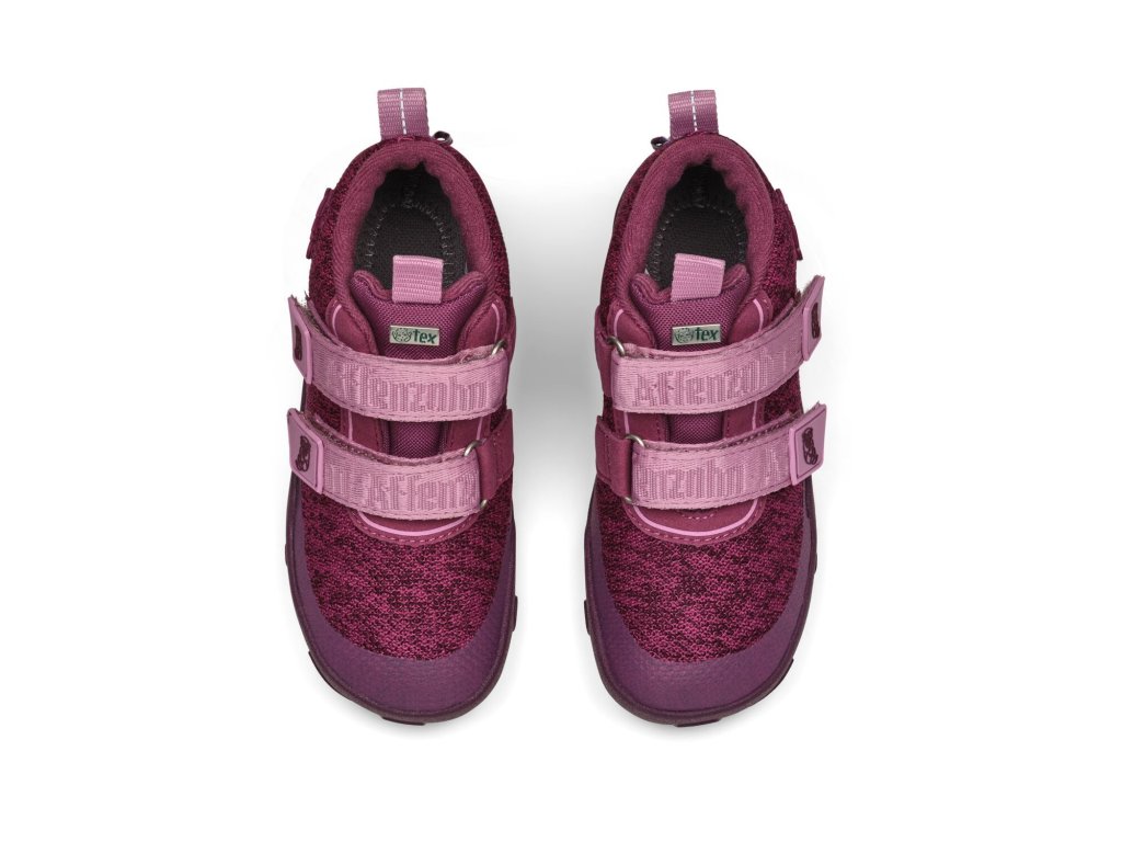 Dětské barefoot boty německé značky Affenzahn jsou měkké a vyroběné z recyklovaného Bluesign polyesteru. Díky tenké, ohebné a neklouzavé podrážce umožňují přirozenou dynamiku chůze a postupné odvalování chodidla. To spolu s dostatečnou šířkou a místem pro prsty umožňuje přirozený a zdravý vývoj dětských nohou. Nově vyvinutá podrážka poskytuje přilnavost a stylový design skvěle vypadá. Jsou voděodolné, reflexní a protiskluzové. Nepromokavá a prodyšná membrána AffenTex zajistí, že budou dětské nohy stále v suchu a v teple bez ohledu na počasí. Svrchní materiál tvoří 52% recyklovaný bluesign polyester, podšívka je 100 % recyklovaný polyester, podešev je protiskluzová a tvoří ji 30% přírodní pryž a 70% syntetická pryž. Boty se zapínají na dva suché zipy, takže děti nebudou mít s obouvání žádný problém. Na zadní straně se nachází puzzle obrázek, pro rozlišení pravé a levé boty a jsou vybaveny reflexními prvky.