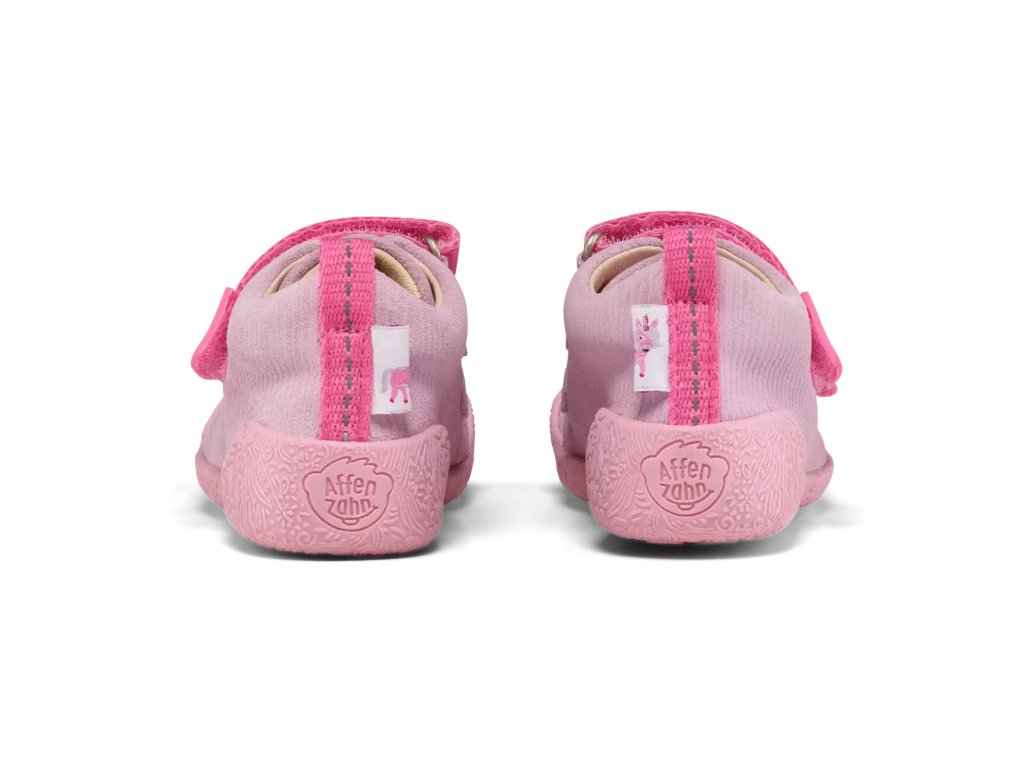 Dětské barefoot boty německé značky Affenzahn jsou měkké a lehké kožené botičky vhodné pro první krůčky ale i pro pokročilé chodce. Díky tenké, ohebné a neklouzavé podrážce umožňují přirozenou dynamiku chůze a postupné odvalování chodidla. To spolu s dostatečnou šířkou a místem pro prsty umožňuje přirozený a zdravý vývoj dětských nohou. Svrchní materiál je kožený, podešev je protiskluzová a tvoří ji 30% přírodní pryž a 70% syntetická pryž. Boty se zapínají na dva suché zipy, takže děti nebudou mít s obouvání žádný problém, boty mají gumový okop.
