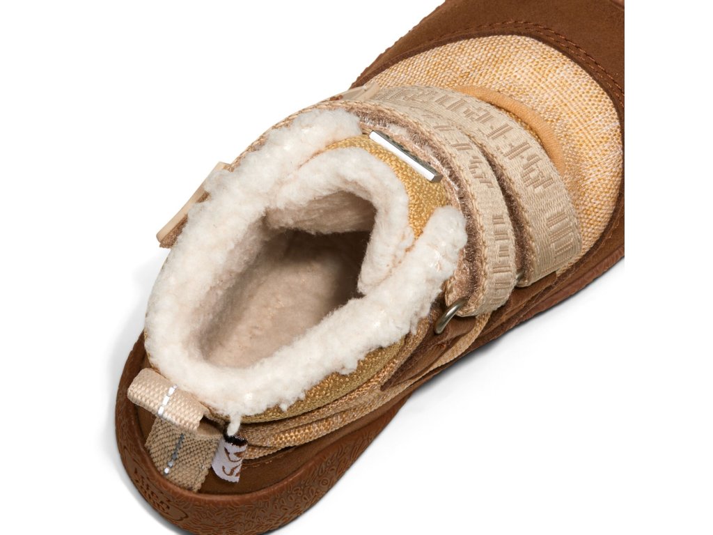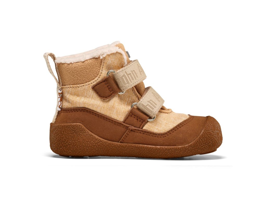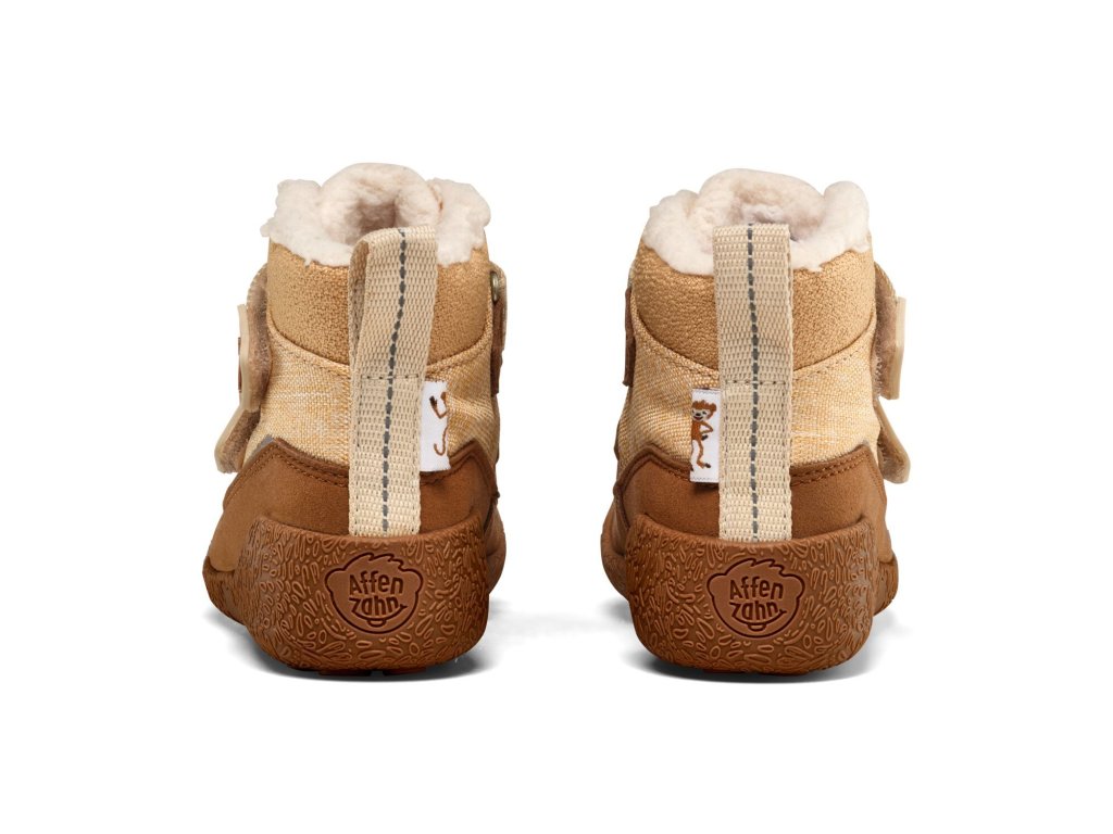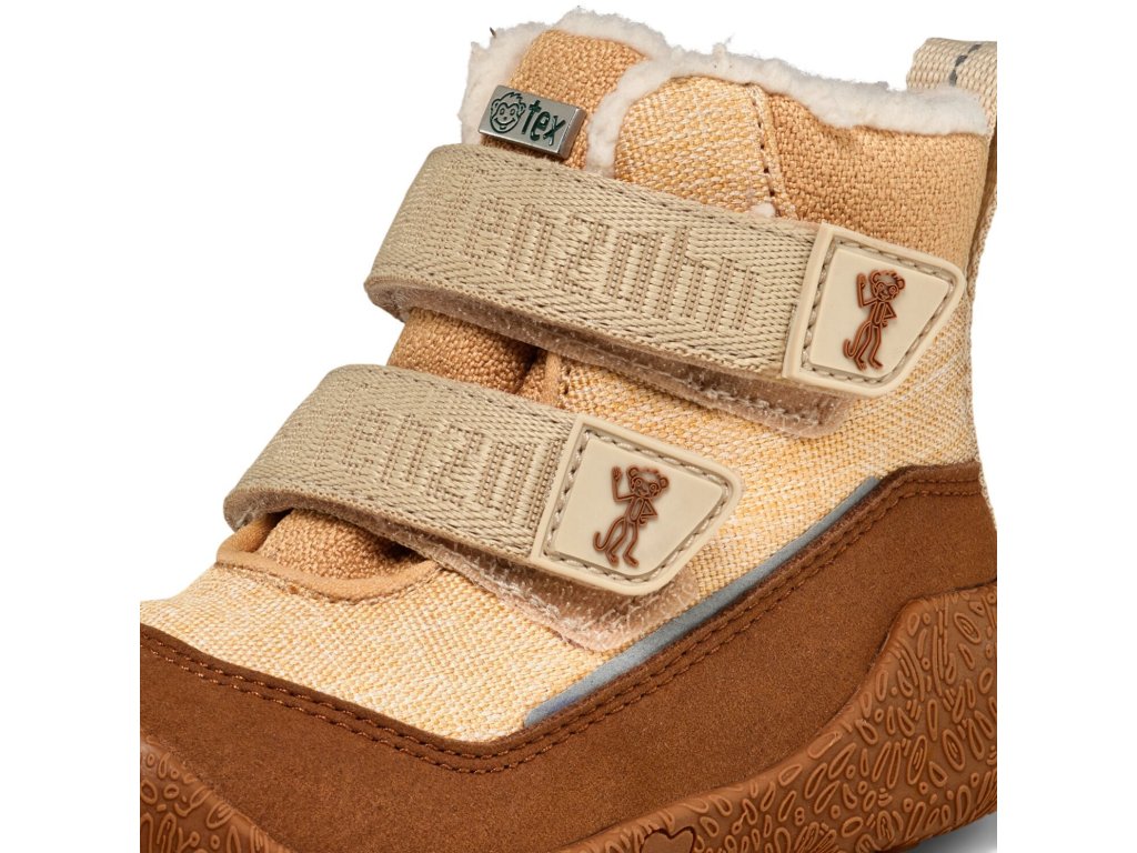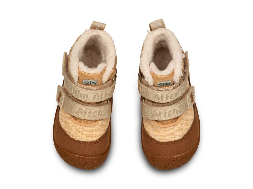 Dětské barefoot boty německé značky Affenzahn jsou nepromokavé s membránou AffenTex a mají hřejivou podšívku, která batolata udrží v teple při jejich prvních zimních dobrodružstvích. Nově vyvinutá podrážka poskytuje přilnavost a stylový design vypadá skvěle. Jsou super lehké a podrážka bot Affenzahn Prewalker je jen tak silná, jak je potřeba. Není polstrovaná, aby děti mohly cítit a vnímat své okolí a povrch. Boty jsou vybaveny reflexními prvky, které odrážejí světlo ve tmě. Přirozený tvar bot nabízí dostatek prostoru pro každý prst, takže nohy nejsou stísněné a mohou se zdravě vyvíjet. Na zadní straně se nachází puzzle obrázek, pro rozlišení pravé a levé boty. Boty jsou veganské - svrchní materiál je ze 100% recyklovaného polyesteru, certifikace bluesign® a polyamidové mikrovlákno. Podšívka je 100% recyklovaný polyester, podešev je protiskluzová a tvoří ji 30% přírodní pryž a 70% syntetická pryž, stélku mají z rostlinného materiálu (pěna BLOOM) a syntetické pěny. Se suchým zipem boty pevně sedí na noze a lze je snadno zapnout a rozepnout.