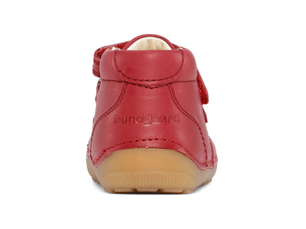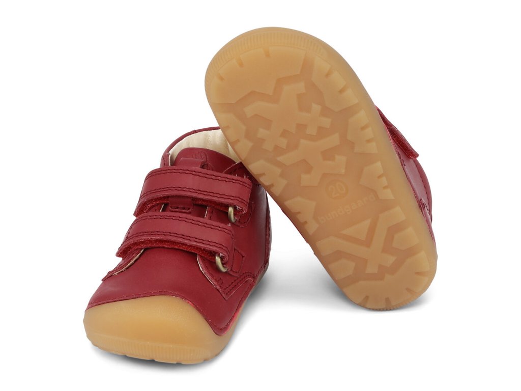 Barefoot celoroční kožené boty značky Bundgaard jsou měkké, pohodlné boty s flexibilní gumovou podrážkou vhodné i pro ty nejmenší nožičky. Botičky mají velice ohebnou podrážku ve všech směrech, nulový drop. Podrážka je v přední části před prsty vyvýšená a chrání botičky před okopáním, stejně tak je mírně vyvýšená za patou, opatek je lehce zpevněný. Boty mají vyjímatelnou stélku, která je z vrchní strany kožená a ze spodní strany je 1 mm pěny, je bez tvarování a ohebná. Pod touto stélkou je ještě textilní tenká vrstva pro měkčí došlap, je tedy možné chodit i bez kožené stélky. Zapínání je na dva suché zipy, které umožňují dostatečnou regulaci na nízký nárt, ale je možnost povolit i pro nárt vyšší. Botičky sedí na normální až užší nožky, na úzké kotníky a jsou vhodné i pro dominantní palec.