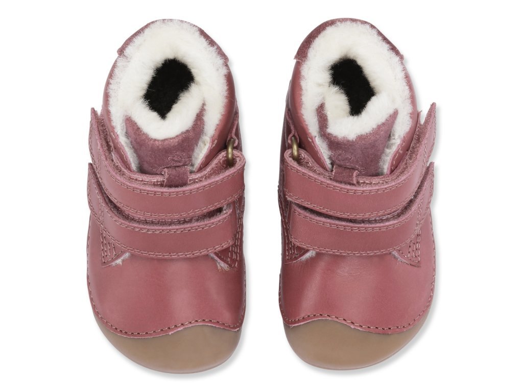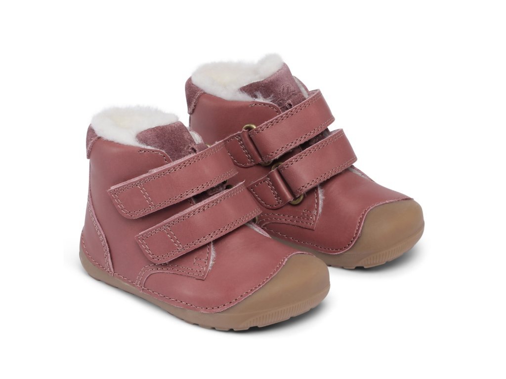 Barefoot zimní kožené boty značky Bundgaard jsou měkké, pohodlné boty s flexibilní gumovou podrážkou vhodné i pro ty nejmenší nožičky. Botičky mají velice ohebnou podrážku ve všech směrech, nulový drop. Podrážka je v přední části před prsty vyvýšená a chrání botičky před okopáním, stejně tak je mírně vyvýšená za patou, opatek je lehce zpevněný. Boty jsou zateplené ovčí vlnou, jsou nižší pro přirozený volný pohyb v kotníku a jsou vhodné i pro začínající chodce. Zapínání je na dva suché zipy, které umožňují dostatečnou regulaci na nízký nárt, ale je možnost povolit i pro nárt vyšší. Botičky sedí na normální až užší nožky, na úzké kotníky a jsou vhodné i pro dominantní palec. Dobrá voděodolnost, po naimpregnování snesou kratší chození v trávě i po dešti.
