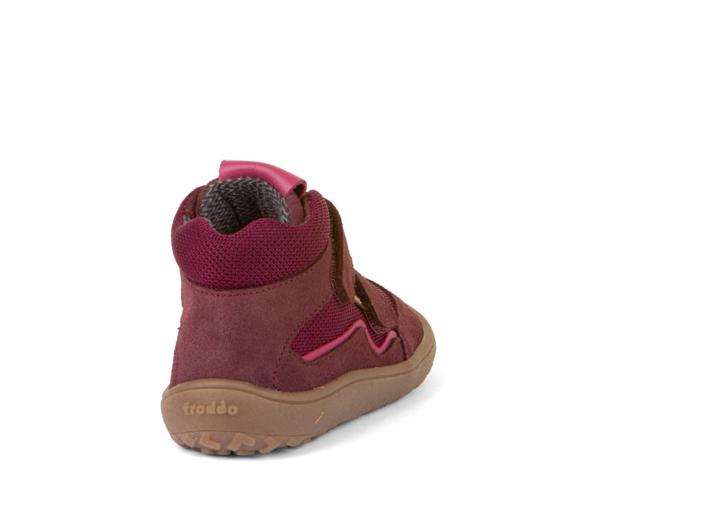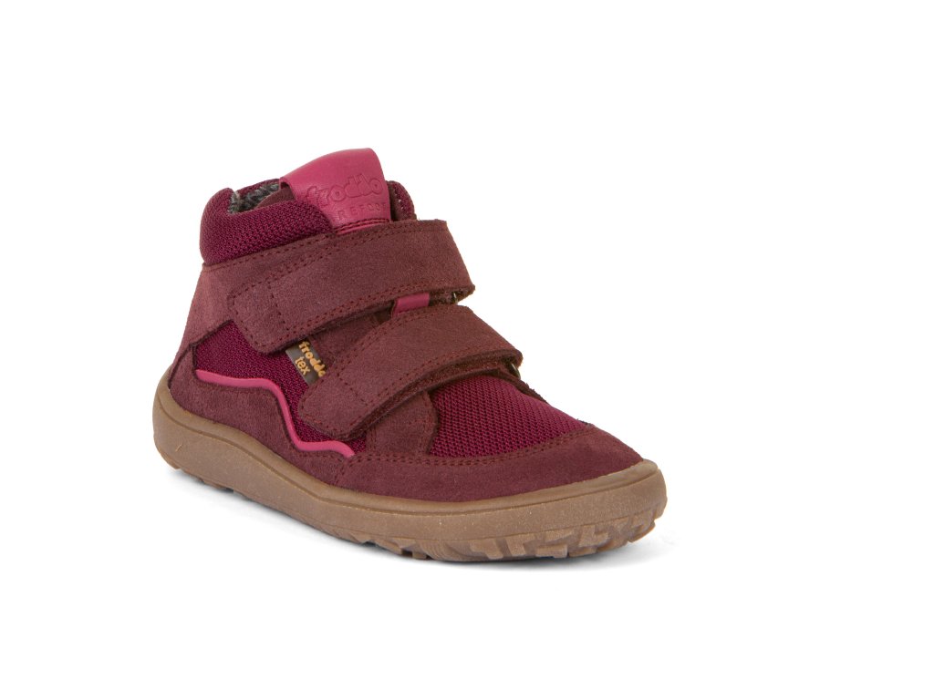 Barefoot podzimní kotníkové boty od chorvatské značky Froddo s nepromokavou membránou FRODDO TEX jsou z nové modelové řady pro rok 2023. Botičky jsou extrémně měkké, lehké a ohebné všemi směry, i když se zpočátku zdá podrážka tužší, nošením velmi rychle změkne. Sedí na normální až mírně širší nohu, ale lze je velmi dobře utáhnout okolo kotníku a díky zapínání na dva suché zipy je lze dobře regulovat na nárt. Boty jsou vyrobeny z vysoce kvalitní přírodní kůže a textilie, která odpuzuje vodu a neobsahuje nebezpečné látky a sloučeniny, kůže je velmi příjemná a odolná, podšívka je textilní. Širší tvar špičky poskytne dostatek prostoru dětským prstíkům, praktické přetažení gumy přes špičku (ochrana před promáčením a odíráním). Nohy mohou vnímat povrch po kterém chodí díky rovné a tenké podrážce. Boty mají nulový drop, nová extra přilnavá podrážka, která neklouže.