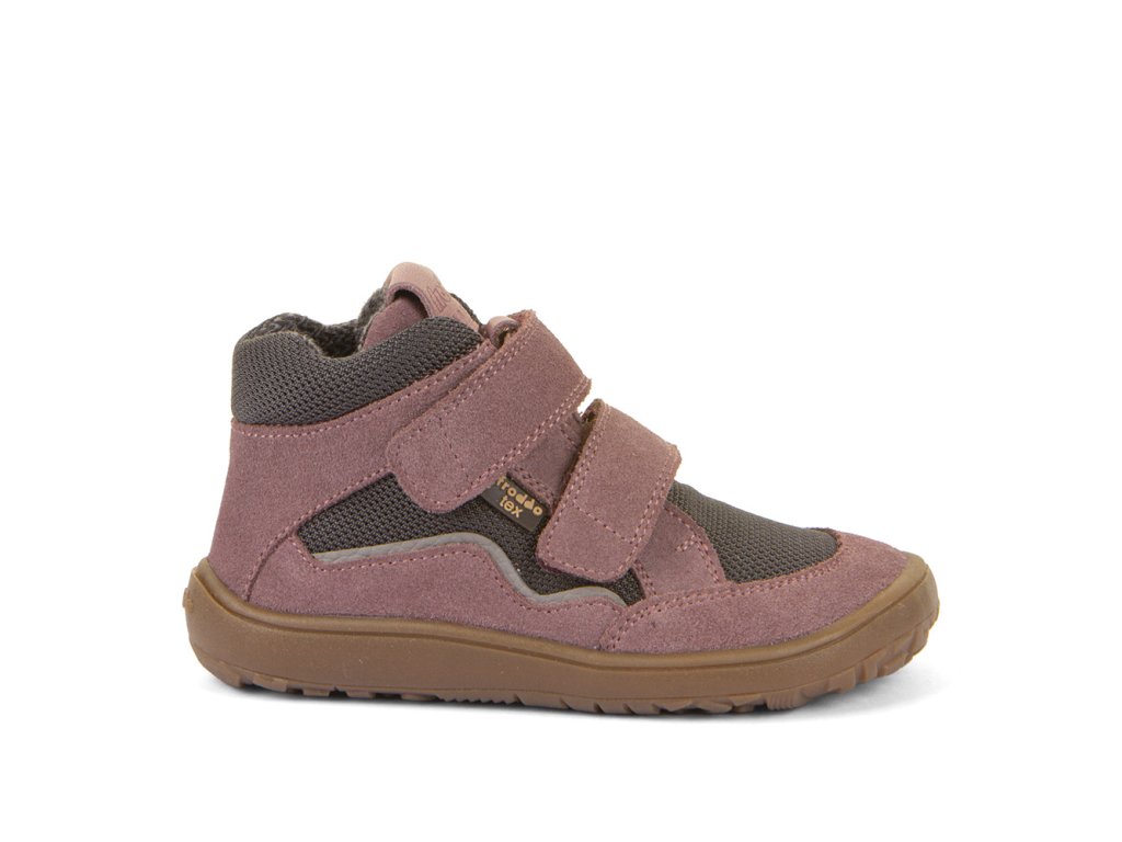 Barefoot podzimní kotníkové boty od chorvatské značky Froddo s nepromokavou membránou FRODDO TEX jsou z nové modelové řady pro rok 2023. Botičky jsou extrémně měkké, lehké a ohebné všemi směry, i když se zpočátku zdá podrážka tužší, nošením velmi rychle změkne. Sedí na normální až mírně širší nohu, ale lze je velmi dobře utáhnout okolo kotníku a díky zapínání na dva suché zipy je lze dobře regulovat na nárt. Boty jsou vyrobeny z vysoce kvalitní přírodní kůže a textilie, která odpuzuje vodu a neobsahuje nebezpečné látky a sloučeniny, kůže je velmi příjemná a odolná, podšívka je textilní. Širší tvar špičky poskytne dostatek prostoru dětským prstíkům, praktické přetažení gumy přes špičku (ochrana před promáčením a odíráním). Nohy mohou vnímat povrch po kterém chodí díky rovné a tenké podrážce. Boty mají nulový drop, nová extra přilnavá podrážka, která neklouže.