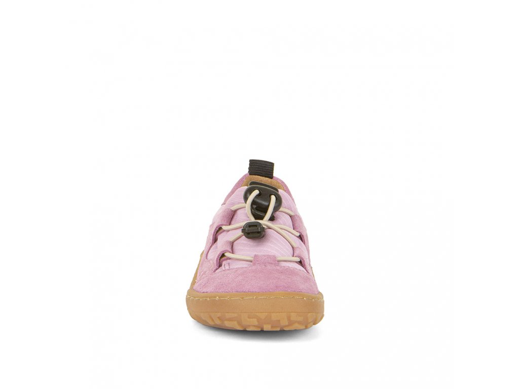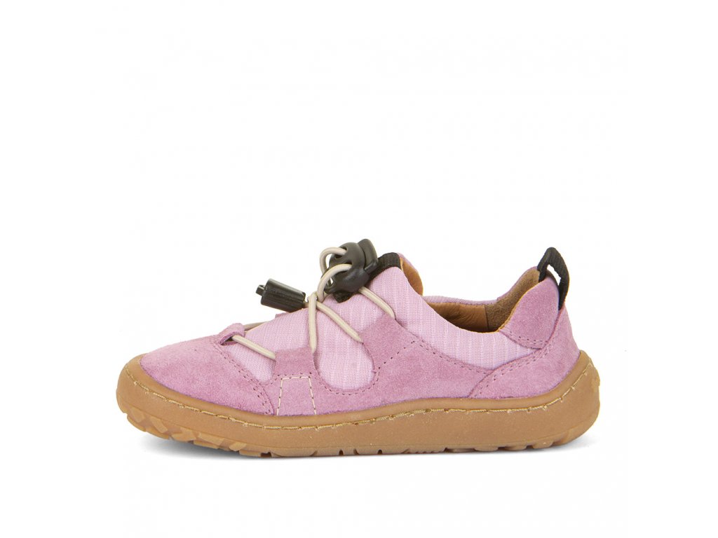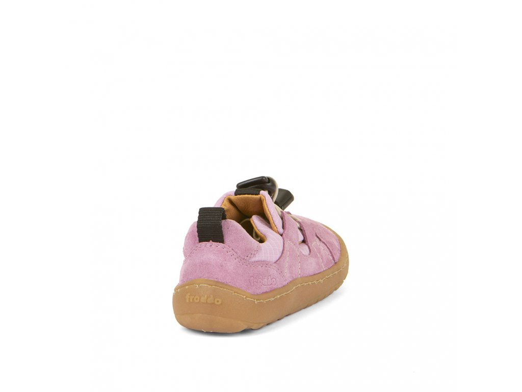 Barefoot celoroční boty od chorvatské značky Froddo. Botičky jsou extrémně měkké, pohodlné a ohebné všemi směry, i když se zpočátku zdá podrážka tužší, nošením velmi rychle změkne. Sedí na normální až mírně širší nohu, užší v patě a v kotníku, vhodné jsou na normální až nižší nárt, nedoporučujeme na vysoký nárt. Boty mají novou protiskluzovou podrážku s vyšším vzorkem - EXTRA GRIP. Boty jsou z kombinace kvalitní broušené kůže a vodoodpudivé textilie, materiál neobsahuje nebezpečné látky a sloučeniny, kůže je velmi příjemná a odolná, podšívka je také kožená. Anatomický tvar špičky poskytne dostatek prostoru dětským prstíkům, praktické přetažení gumy přes špičku (ochrana před promáčením a odíráním). Nohy mohou vnímat povrch po kterém chodí díky rovné a tenké podrážce. Zapínání je na dva suché zipy pro snadné dotažení v nártu. Stélka je vyjímatelná, kožená a antibakteriální. Boty mají měkký opatek, ale mírně pevnější těsně nad patou díky vytažené gumě.