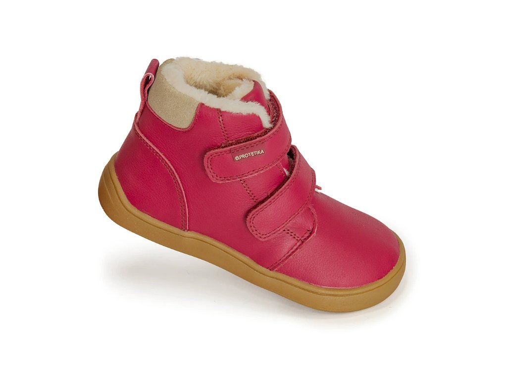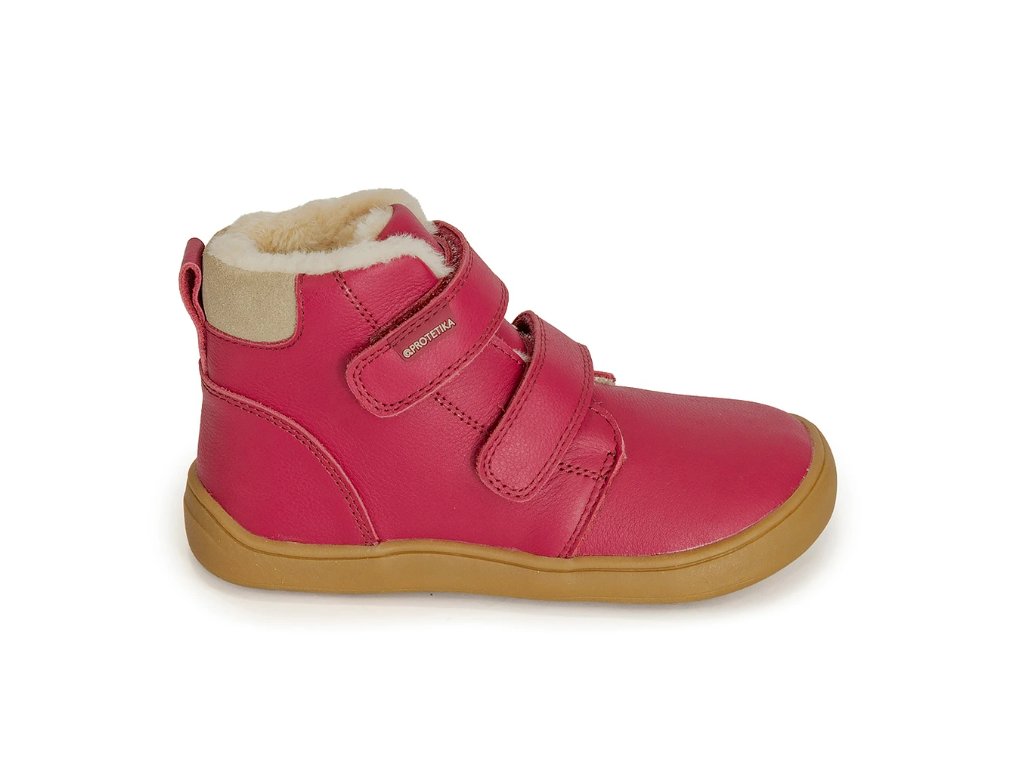 BAREFOOT zimní boty značky PROTETIKA jsou kožené botičky. Jde o zcela nový model pro rok 2023, který má úplně novou podrážku a lepší tvar oproti starším modelům. Obuv má flexibilní podešev ve směru chůze i příčně a lehce zpevněnou patu, špička je anatomicky tvarovaná a zaručuje dostatek místa pro prsty. Zapínání na dva suché zipy, které zaručují dobrou regulaci výšky nártu a samozřejmostí je zvýšená okopová špička i vyvýšení v patě. Svršek je z přírodní hladké kůže a textilu na jazyku, všitý jazyk zabraňuje vniknutí vlhkosti do boty, vnitřní část je ze syntetického kožíšku s vyjímatelnou fleecovou stélkou (netvarovaná). Podrážka je gumová.