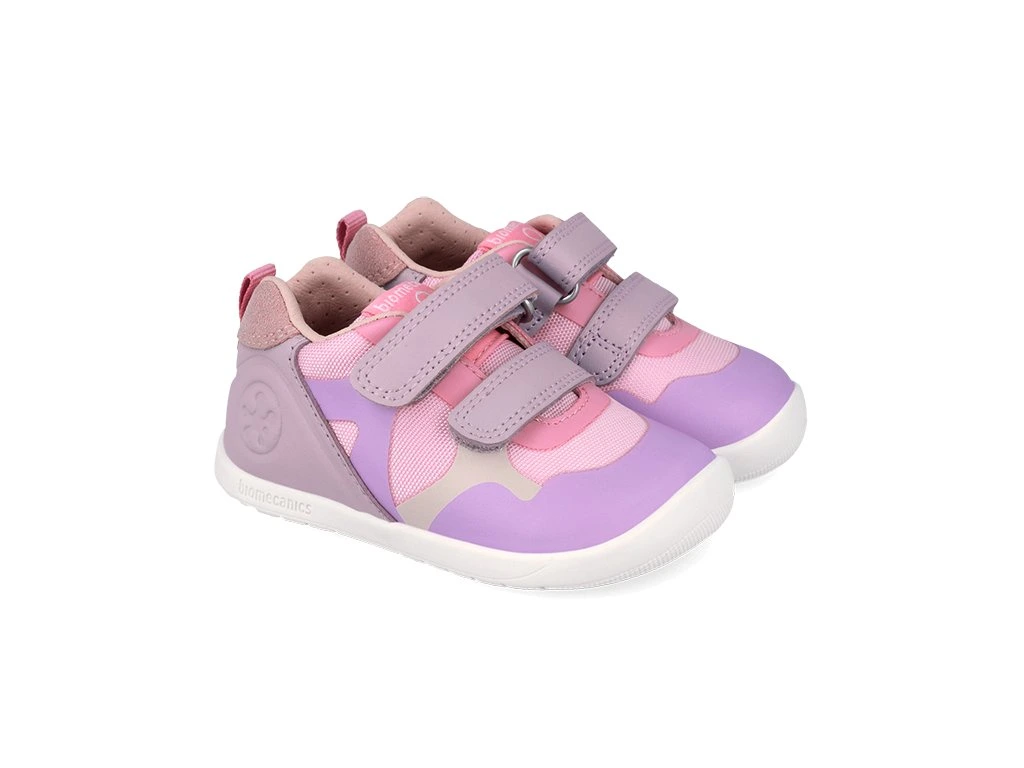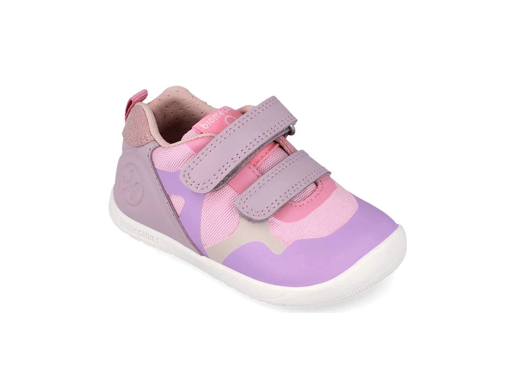 Barefoot boty/tenisky španělské značky Biomecanics jsou měkké, lehoučké boty s extra flexibilní podrážkou vhodné i pro ty nejmenší nožičky, vhodné i pro začínající chodce. Botičky mají velice ohebnou gumovou podrážku ve všech směrech, nulový drop. Svršek je kombinace moderních syntetických materiálů a prodyšné textilie. Vnitřek boty je vybaven speciální technickou podšívkou, která je na dotek i vlastnostmi velmi podobná kůži – je vysoce prodyšná, antibakteriální a skvěle odvádí vlhkost. Podrážka je v přední části před prsty vyvýšená a chrání botičky před okopáním. Boty mají pevnější opatek. Mají anatomický tvar špičky, vyjímatelná antibakteriální stélka. Zapínání je na dva suché zipy, které umožňují dostatečnou regulaci v nártu.
