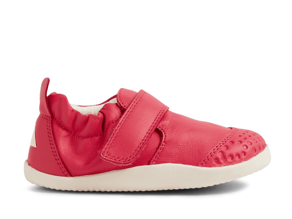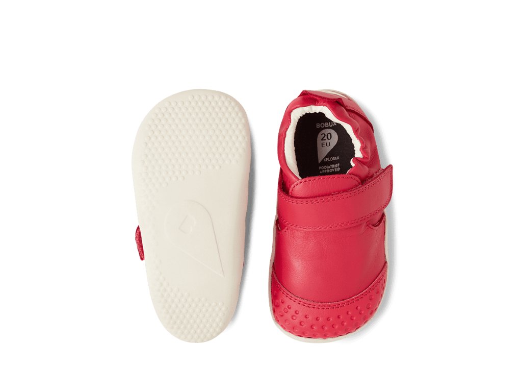 Dětské první botičky/capáčky pro nejmenší děti od značky Bobux jsou ideální pro první krůčky, jelikož jsou mimořádně lehké, měkké a ohebné. Mají opravdu tenkou gumovou podešev, napodobují chůzi naboso a jsou vhodné pro nejmenší děti, které se právě staví, dělají první krůčky a potřebují co nejměkčí botičky, které jim nebudou na nožkách překážet. Botičky nebudou nijak omezovat nožky dětí a umožní jim ten nepřirozenější pohyb. Sedí na užší a normální nožku, pro normální nárt a úzké kotníčky. Jsou vyrobeny z ultralehkých materiálů, speciální špička z odolného materiálu chrání botičku proti okopání. Svršek je z prvotřídní měkké kůže. Opatek je měkký.