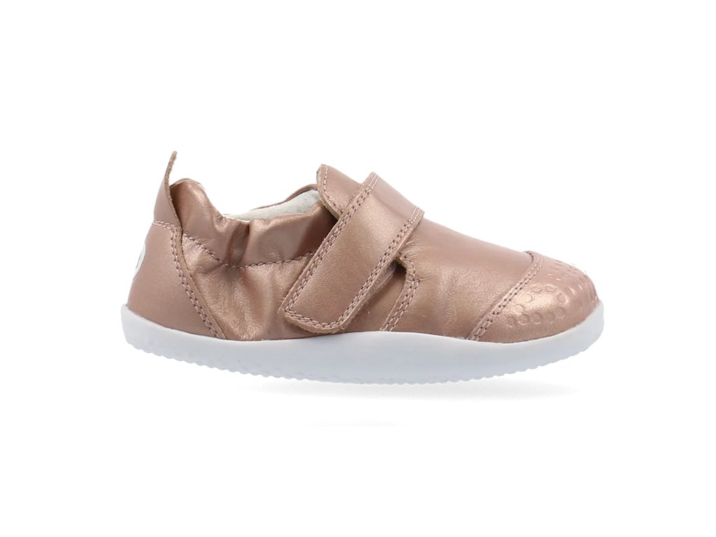Dívčí botičky/capáčky pro první krůčky značky BOBUX XPLORER v Rose Gold barvě.