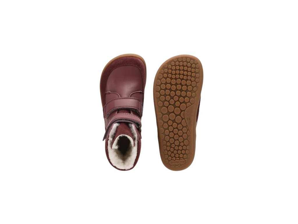 Barefoot zimní kotníčkové kožené boty značky Bundgaard jsou měkké, pohodlné boty s flexibilní gumovou podrážkou vhodné i pro ty nejmenší nožičky. Botičky jsou z nové modelové řady roku 2024, jsou širší v prstové části. Mají membránu pro vyšší voděodolnost, jsou zateplené ovčím kožíškem v celém vnitřku boty, vyjímatelná termoizolační stélka se zateplením, přesah podrážky přes špičku. Jsou vyrobeny z kombinace hladké a broušené kůže, velmi odolný materiál. Botičky mají zpočátku tužší podrážku, ale chozením změkne, nulový drop. Zapínání je na dva suché zipy (možnost zkrácení), které umožňují dostatečnou regulaci na nižší nebo normální nárt, jsou prostorné v oblasti kotníku na širší nožky, jsou dostatečně široké v oblasti prstů, vhodné i na dominantní palec a mírně zúžené v patě. Botičky mají pevnější opatek a jsou vhodné i pro začínající chodce.