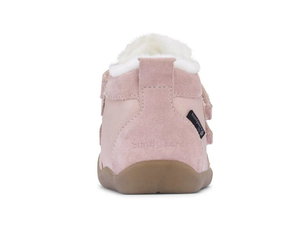 Barefoot zimní kožené boty značky Bundgaard jsou měkké, pohodlné boty s flexibilní gumovou podrážkou vhodné i pro ty nejmenší nožičky. Botičky jsou z nové modelové řady, jsou širší v prstové části (oproti klasického modelu Petit). Mají membránu pro vyšší voděodolnost, jsou zateplené ovčím kožíškem v celém vnitřku boty, vyjímatelná termoizolační stélka se zateplením, přesah podrážky přes špičku. Jsou vyrobeny z kombinace hladké a broušené kůže, velmi odolný materiál. Botičky mají zpočátku tužší podrážku, ale chozením změkne, nulový drop. Zapínání je na dva suché zipy (možnost zkrácení), které umožňují dostatečnou regulaci na nižší nebo normální nárt, jsou prostorné v oblasti kotníku na širší nožky, jsou dostatečně široké v oblasti prstů, vhodné i na dominantní palec a mírně zúžené v patě. Botičky mají pevnější opatek a jsou vhodné i pro začínající chodce.