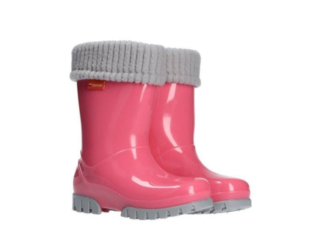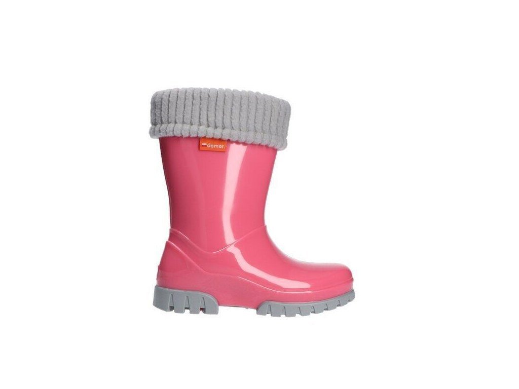 Dětské barevné gumáky s vyjímatelnou hřejivou vložkou značky Demar jsou ideální pro deštivé letní počasí. Gumáky mají hrubší protiskluzovou podrážku, která zajišťuje bezpečnou chůzi. Jsou vyrobeny z vysoce kvalitní a odolné PVC podšité textilií, na patě obuvi je bezpečností reflexní prvek pro dobrou viditelnost dítěte ve tmě. Vložku je možné prát na 40°C v běžných pracích prostředcích, nesušit v sušičce. V teplejších dnech lze vložka vytáhnout a můžeme nosit bez zateplené vložky. Gumáčky jsou velice pohodlné a lehké. Velikosti jsou dvojčíslo.