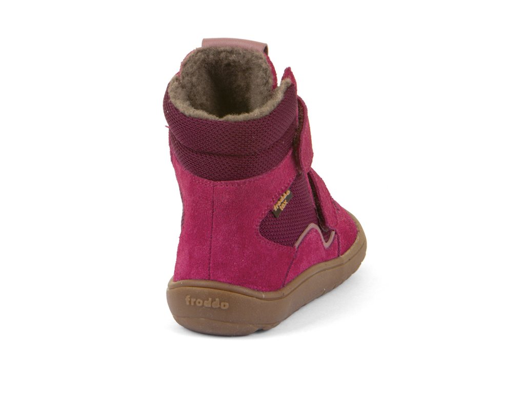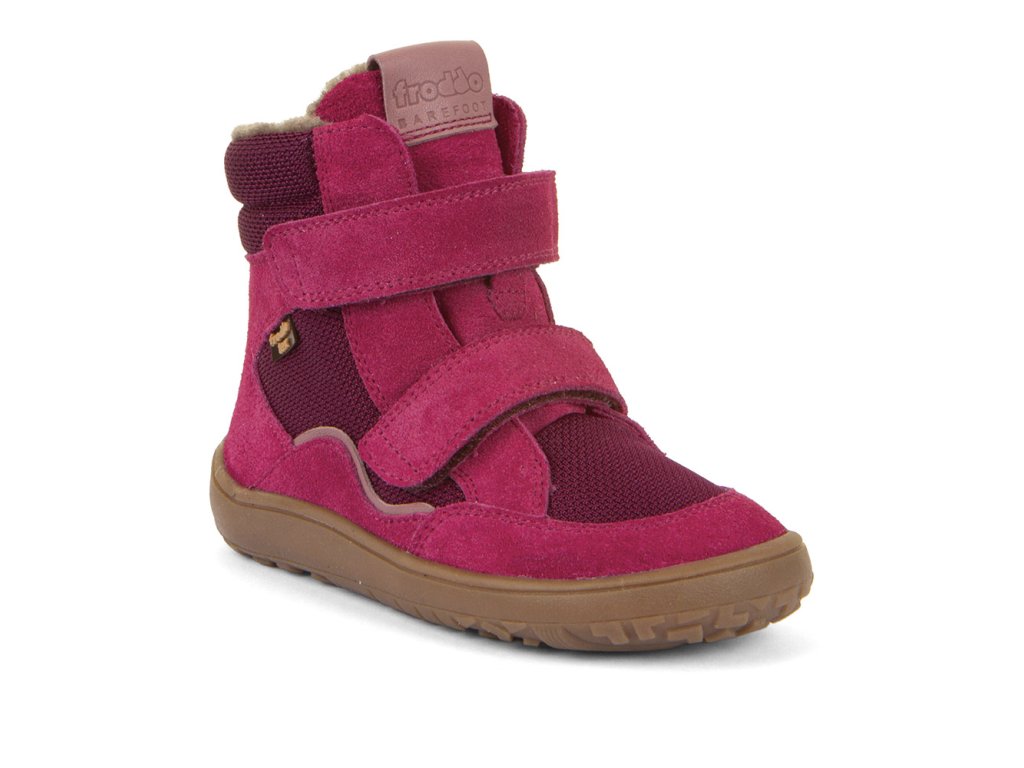 Barefoot zimní vyšší (nad kotník) boty od chorvatské značky Froddo s dostatečnou tepelnou izolací a voděodolnou membránou. Botičky jsou extrémně měkké, lehké a ohebné všemi směry, i když se zpočátku zdá podrážka tužší, nošením velmi rychle změkne. Sedí na normální až mírně širší nohu, ale lze je velmi dobře utáhnout okolo kotníku a díky zapínání na dva suché zipy je lze dobře regulovat na nárt. Boty jsou vyrobeny z vysoce kvalitní přírodní kůže a textilie s membránou Froddo-Tex, která odpuzuje vodu a neobsahuje nebezpečné látky a sloučeniny, kůže je velmi příjemná a odolná, podšívka je z ovčí vlny. Širší tvar špičky poskytne dostatek prostoru dětským prstíkům, praktické přetažení gumy přes špičku (ochrana před promáčením a odíráním). Nohy mohou vnímat povrch po kterém chodí díky rovné a tenké podrážce. Boty mají nulový drop, nová extra přilnavá podrážka, která neklouže. Stélka je plochá vyjímatelná z ovčí kožešiny.